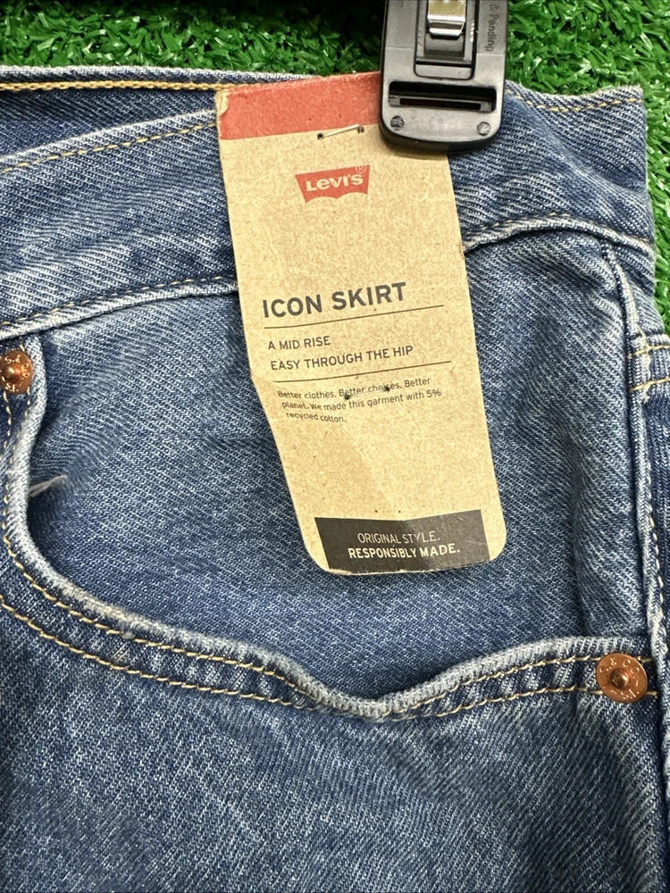 This is a Levi's women's denim skirt in a blue color, with a regular fit and a short length. It features an iconic style, made of cotton denim fabric. The skirt is designed for women and is in size 33. SKU: k17 Listed by:AS CONDITION:NWT Size/shade: blue / size 33 Date:01/17/25 The item is inspected to the best of our abilities and appears to be in good condition.