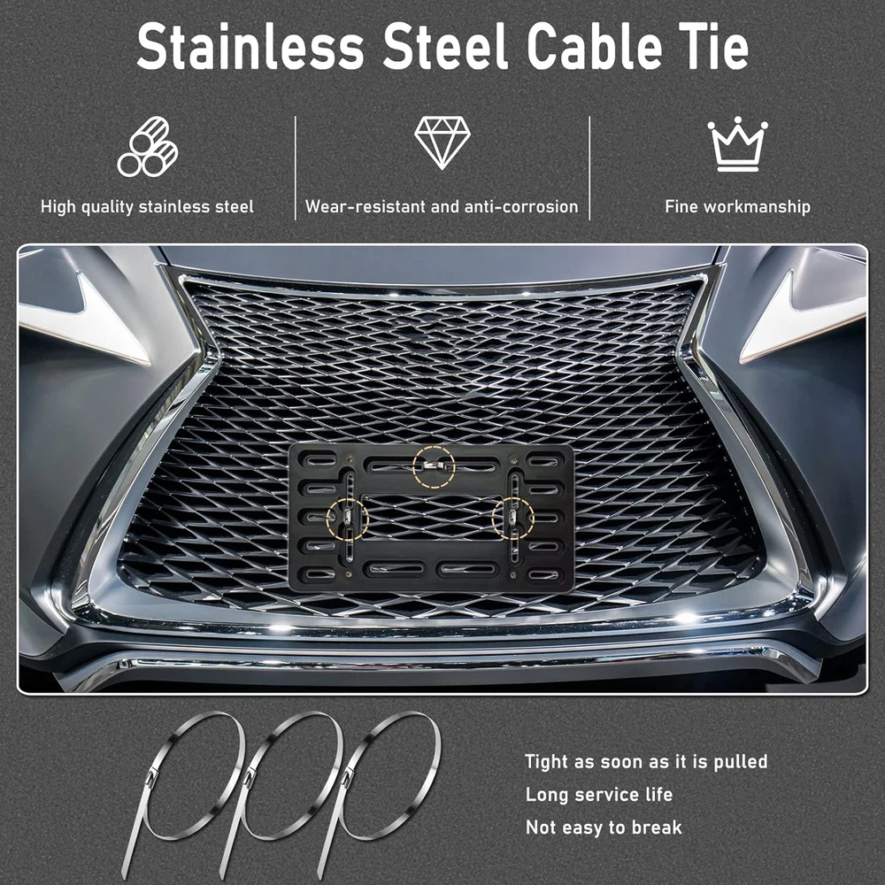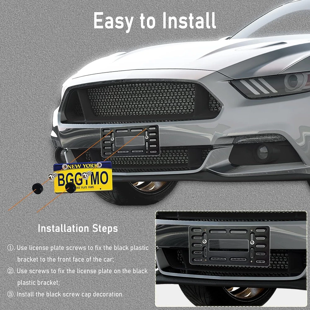 Menu Other Items Feedbacks About Us Contact Us Add To Favorites License Plate Bracket Holder- Front License Plate Mounting Kit, Universal Bumper Car Tag Frame Mount Adapter with Stainless Steel Screw Cap, Cable Ties For Front License Plate Mount- If you have 2 pre-drilled holes in your front bumper, no matter if the hole spacing or position is in line with standard license plate, you can use our front license plate adapter for license plate mount, if your car bumper has no hole, you can use our stainless steel cable ties to mount on the grille Firm License Plate Tag Holder - This front license plate bracket is made of black ABS plastic which resists corrosion and rust. The metal license plate does not directly contact the car paint, avoid scratches and noise, protect the license plate rustproof and rattle proof. Easy To Install - Our front tag brackets have a unique design - 4 copper nuts with neat threads that hold the bolts tightly and hold the license plate on the bracket. The kit includes license plate mounting hardware: stainless steel license plate screws, black screw caps , stainless steel cable ties. Universal Front Plate Holder- Designed to fit all standard 6x12 inch novelty/license plates. The black license plate holder is suitable for all vehicles with contoured bumper. The multiple mounting holes can be used as a good license plate adapter to install 4 holes or 2 holes or non-standard license plates. After sales - If you're unsatisfied with the license plate mount kit for any reason or the screws don't fit your model, please contact us and we'll fix it - refund or send a replacement. Product Description Item Specification Color Black - 4 Holes Material Stainless Steel, Plastic Material Type Stainless Steel, Plastic Vehicle Service Type Car Compatible with Vehicle Type Car Finish Types Metal Product Dimensions 6"L x 12"W Item Dimensions L x W 6"L x 12"W Dimensions Shipping Returns Additional Info Product Dimensions: 12.0 "w x 6.0 "w. Weight: 5.6 oz Fast shipping is very important for us. Our standard shipping service is FREE. Your order will be shipped within 1-3 business days upon full payment received. Most items are delivered within 3-5 business days, however, please allow 3-10 business days. We are shipping only to USA. We only ship to the confirmed Paypal address. We reserve the right to cancel any order for any reason at any time. We are not responsible for undeliverable addresses. We offer a 30 day return policy from checkout winning date. Your satisfaction is guaranteed! If for any reason you are unhappy with your item, just return it within 30 days for a full refund, minus shipping cost. Please contact us prior to initiating a return so that we can issue you a refund authorization. Items defective upon receipt must be packaged in their retail packaging as if new and returned with a detailed description of the problem. Return shipping fees are not refundable. We reserve the right to decline any returns if the above guidelines are not followed. All of our items, unless otherwise stated, will only run on 120 volts. Please check to make sure your country complies with these specifications. If you have a problem or question regarding your transaction please contact us before leaving any type of feedback. We will work with you to resolve any problem you may have.