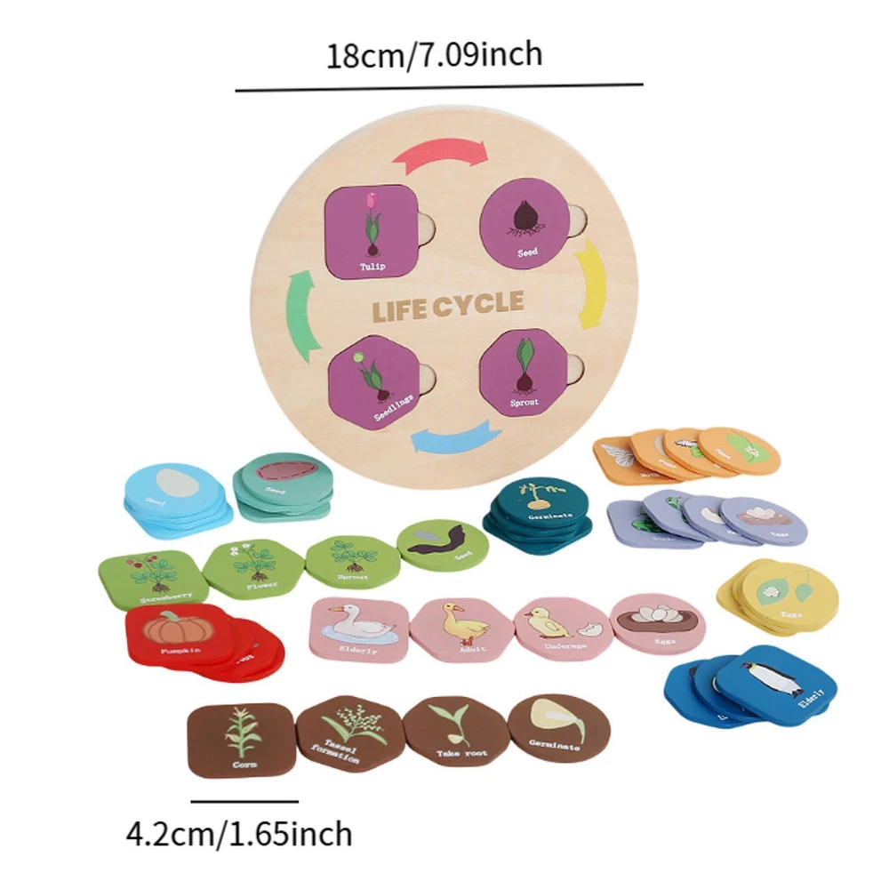 Home & Garden Home Décor Kitchen, Dining & Bar Yard, Garden & Outdoor Living Greeting Cards & Party Supply Clothing, Shoes & Accessories Crafts Health & Beauty Toys & Hobbies Pet Supplies Life Cycle Kit Learning Educational Science Kit for 2~6 Years Old Toddlers Description: 【Life Cycle Learning】: This educational toy set includes 12 themes covering both plant and animal life cycles. It is designed to satisfy children's curiosity about nature by helping them understand the processes of life cycles in a fun and engaging way 【Materials】: Crafted from wood, this preschool science kit with smooth edges. The small wooden pieces are easy for little hands to pick up, making it for young children 【Sorting and Matching Fun】:Each life cycle theme can be categorized by color, with four distinct shapes per theme accompanied by a matching card. This toy enhances children's imagination, hand eye coordination, and cognitive skills through sorting and matching activities 【Educational Entertainment】:Focused on different stages of life cycles, this Life Cycle Kit offers an enjoyable yet educational experience that helps children cognitive the natural world around them 【Gift】:This Life Cycle Tray makes an ideal gift for various occasions such as birthdays, school science stations, role playing activities, parties Size Chart: board diameter : 18cm/7.09inch card : 4.2cmx4.2cm/1.65inchx1.65inch Package Includes: 1 set Life Cycle Tray Note: 1.This is not infant toy , please take away from children to avoid eating. 2.Please allow slightly errors 1-2cm/0.39-0.79inch differences due to manual measurement. Payment Shipping Returns If you are bidding or ordering more than one item, the items will be combined into one order automatically thus you can pay altogether. If you want not to combine, please buy one and immediately pay one separately. Please pay what you win in 7 days. Unpaid Dispute will be automatically open if payment is not received after 7 days. If you pay the bill after received unpaid dispute, please email us to close the unpaid dispute. Because the unpaid dispute will not be closed automatically, and we may ignore it. The buyer is responsible for any applicable import duties and local taxes. Please verify with your customs before making your purchase. Please verify your address during checkout. We are not responsible for any wrong or undeliverable addresses. We are committed to give you the best customer service possible. If for any reason you are unsatisfied with a purchase, please contact us and we'll assist you with a prompt solution. Please let us work on the issues. We'd like to settle any problem in a friendly manner. Please do not open a case on eBay or PayPal, or leave any negative or neutral feedbacks directly! We always reply to messages within 2 business days (off-duty at weekend). Due to the difference of time zone between Hong Kong and your location, sometimes the answer will be delayed. If you do not get a response from us after 2 business days, please check your junk or spam mailbox. Unsatisfied product can be returned within 30 days from the delivery date . We can offer a full refund or exchange, but we are not responsible for return shipping cost. Please contact us to get a RMA number before sending out your return. Feedback: 1. Since your feedback is very important to our business's development, we sincerely invite you to leave positive feedback with four 5-Detailed Selling Rating (DSR) to us basing on your satisfaction with our commodity and service. It's just take you 1 minute. 2. Unfortunately, If you are planning to give us a neutral/negative feedback because of your bad buying experience with us, please contact us at any time so as to clear up your discontent and resolve the problem. Featured Products People always bought together with
