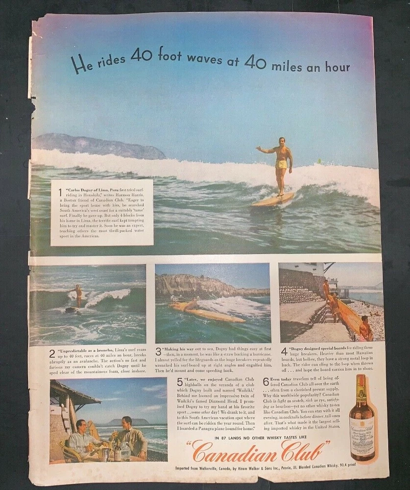 Life Magazine Ad from 1946 Product: Canadian Club Whiskey CAMELS Tobaccos "In 87 Lands no other whisky tastes like Canadian Club" Good condition, Very minimal wear Approximate Size: 1 sheet(s) - total size approximately 10.5 x 13.5 inches All ads and covers are always originals. Shipping Each sheet (or sheets) are carefully placed in between sturdy poster board and mailed in sturdy large envelope. Package will clearly be marked "DO NOT BEND" PAYMENT: We accept online payment via PayPal. This can be made with your checking account or a credit card. Simply complete eBay Checkout after completion of a purchase(s) and/or receipt of invoice. SHIPPING/ORDER STATUS: Shipping charges are $4.00 via USPS shipping but may take a week or two to arrive. If you need your shipment quickly, please request an invoice with Priority or Express shipping which will be an extra charge. We go to the Post Office often so if your item is paid for it will go out in the next shipment. COMMUNICATION: I will always send an email to let you know that we have received your payment and that your package has shipped. Many email programs have spam filters that may prevent my emails from reaching you. Please check your spam/junk folder if you have not received an email from me. You are free to email me anytime you have a question about shipping or the status of your package. AD CONDITION/DESCRIPTION: I try to provide a thorough description for each listing. If you have questions about a listing, feel free to email me and I will provide you with any additional information that you may need. All auctions include a photo of the actual Ads you will receive. No stock photos are ever used.