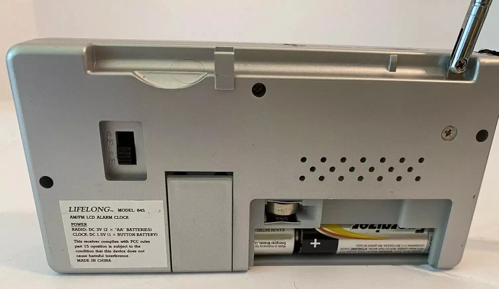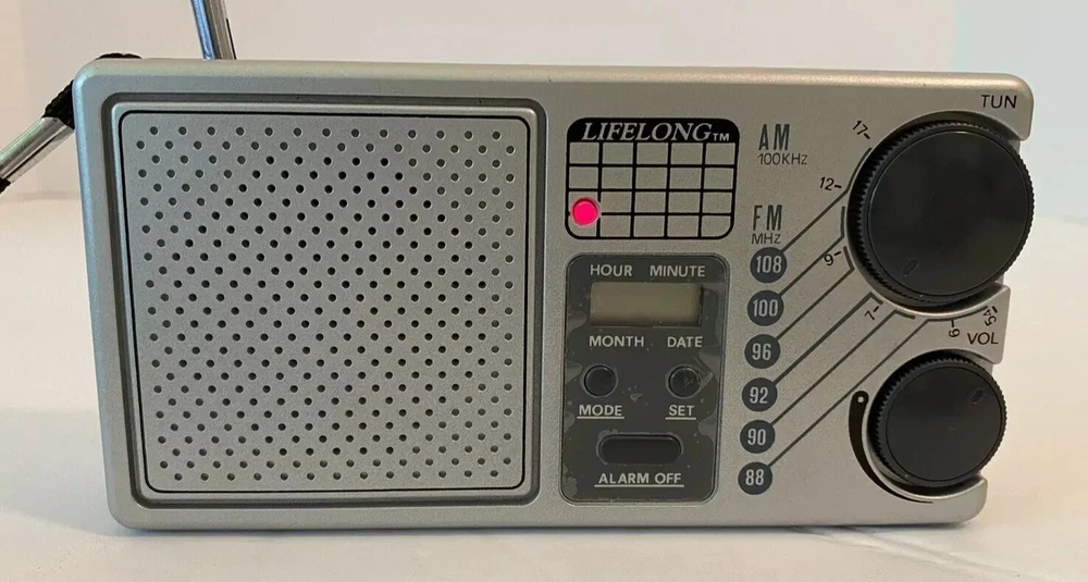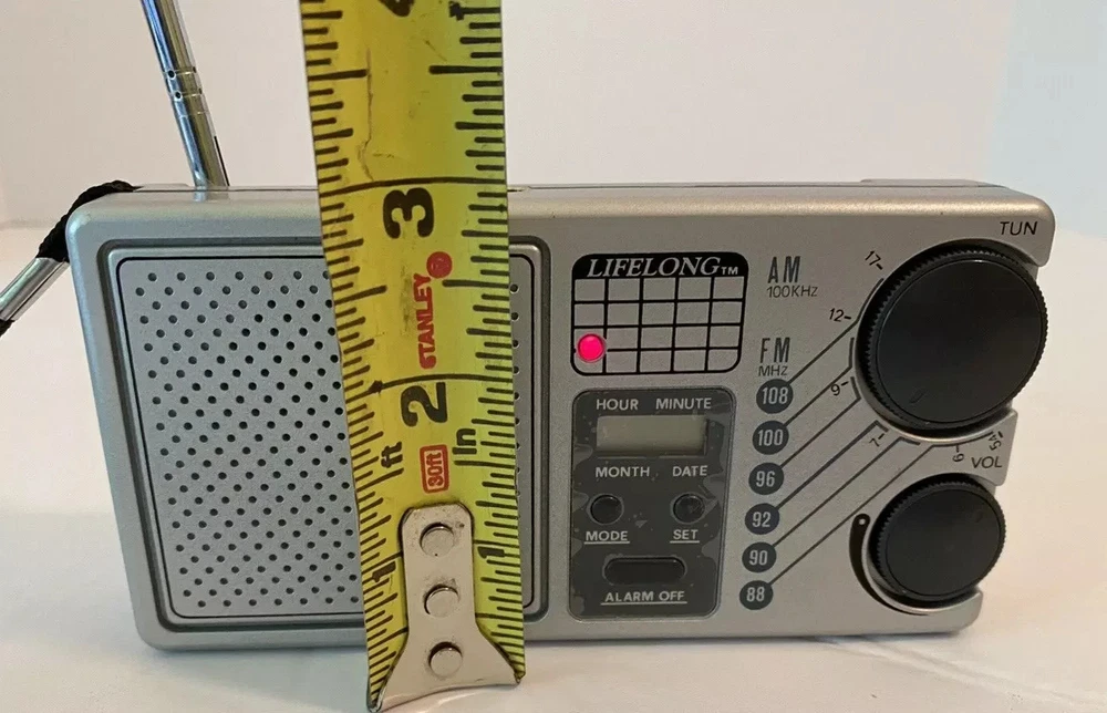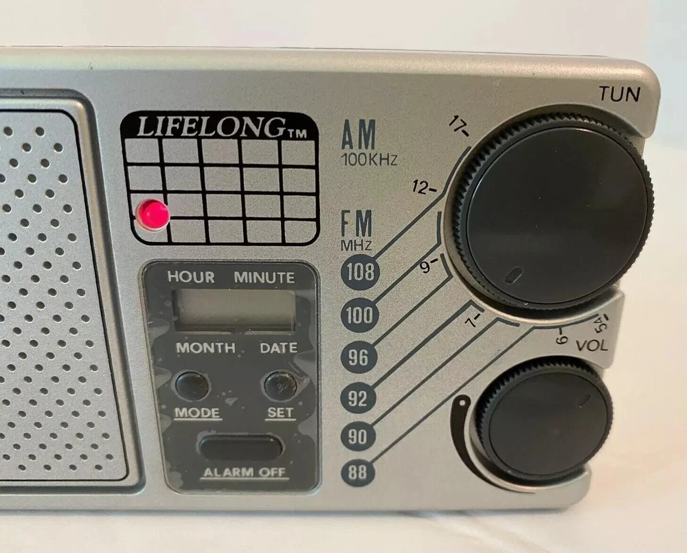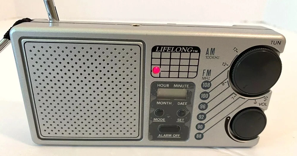 Wake up to your favorite tunes with this Lifelong AM/FM radio alarm clock. The clock is designed with a silver color and a compact size of 5 inches in length, 3 inches in height, and 2 inches in width. It features a headphone jack for private listening and a type A plug for easy charging. This clock radio is part of the DIGITRADIO product line and comes with an LCD alarm function that has been tested to ensure it works smoothly. With its AM/FM band capabilities, you can choose to wake up to your preferred radio station or simply use it as a portable radio throughout the day. It weighs only 1 pound and is a great addition to any bedroom or office.