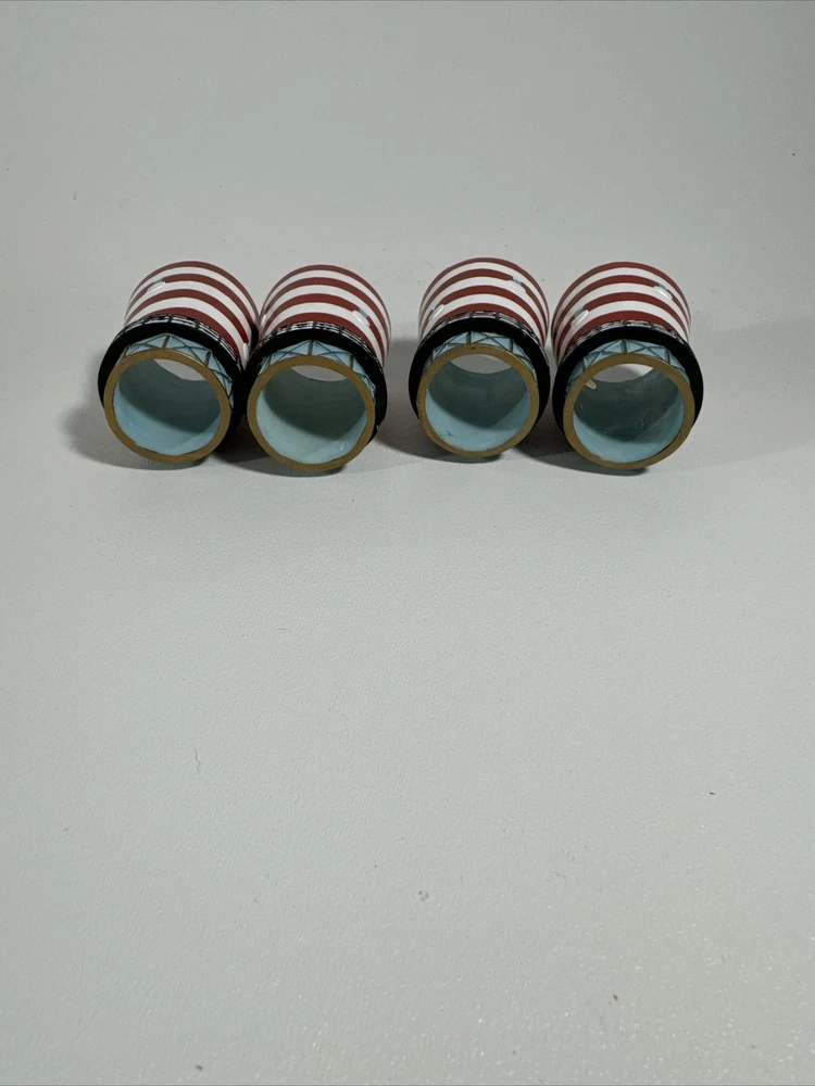 Add a touch of charm to your dining table with this set of four Lighthouse Americana Napkin Rings. These napkin rings are perfect for any occasion, whether you're having a casual family dinner or a formal dinner party. Use it for the 4th of July or your summer dinner party! The rings feature a beautiful red, white, blue, and gold color scheme that will complement any table setting.