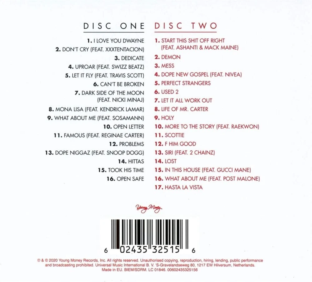 Further Details Title: Tha Carter V -Deluxe- Condition: New Description: About this ItemThe item format is a CDThe Artist Name is LIL WAYNEThe Title is THA CARTER V (X) (DELUXE/2CD) (RSD)The Catalog Number is B003307302Condition NewOther CommentsNew Store StockThe Media Condition is NewThis is new and unplayed The Sleeve Condition is NewNew unplayed We Use Stock ImagesBecause we have over 2 million items for sale we have to use stock images, this listing does not include the actual image of the item for sale. The purchase of this specific item is made with the understanding that the image shown in this listing is a stock image and not the actual item for sale. For example: some of our stock images include stickers, labels, price tags, hyper stickers, obi's, promotional messages, signatures and or writing which may not be available in the actual item. The Sleeve When we describe the sleeve we are describing the printed paper cover or booklet that is included inside the case. The case is not part of the sleeve. CD Version CD's are released in many editions and variations, such as standard edition, re-issue, demonstration (demo), not for sale, promotional (promo), special edition, limited edition, and many other editions and versions. The CD you receive could be any of these editions or variations. If you are looking for a specific edition or version please contact us to verify what we are selling before you buy it. This CD Inner and Outer Sleeve For this specific sale the CDs sleeve condition refers only to the inner paper insert sleeve, and does not refer to the outer digipak, jewel case or cardboard outer casing. While we ship all items with some outer casing, such as a digipak, jewel case, cardboard casing, or plastic sleeve, for this specific sale we are selling only the inner paper sleeve and CD only, as specifically outlined in the description of this listing. (we make this disclaimer as some collectors are looking for a specific outer case type).& Format: CD EAN: 0602435325156 Type: CDs & Vinyl Artist: Lil Wayne No Of Discs: 2 Record Label: Universal Missing Information? Please contact us if any details are missing and where possible we will add the information to our listing.
