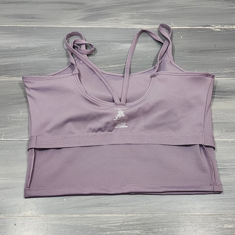 Lily & Lottie Bralette Cloud 9 Shapewear Bra Lilac Size XL Work Out Tank spaghetti straps rounded neckline Sewn In Pads Approx Fit per Lily and Lottie: XL: Bust: 33", Body Length: 16.5", Cup Size: D-DD+ Stretchy Built In Shelf Bra Great Pre Owned Condition Inv# D330