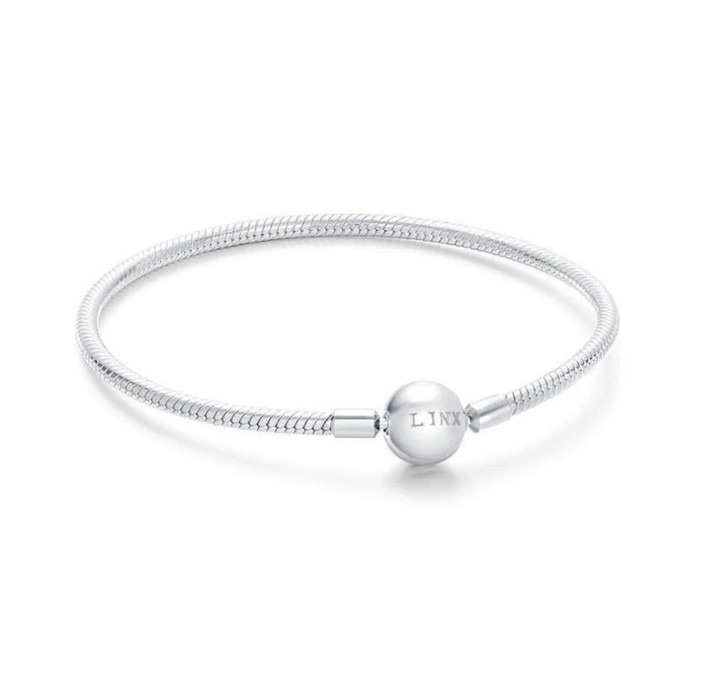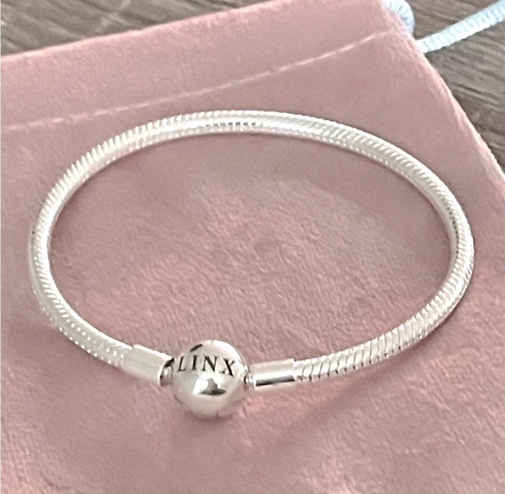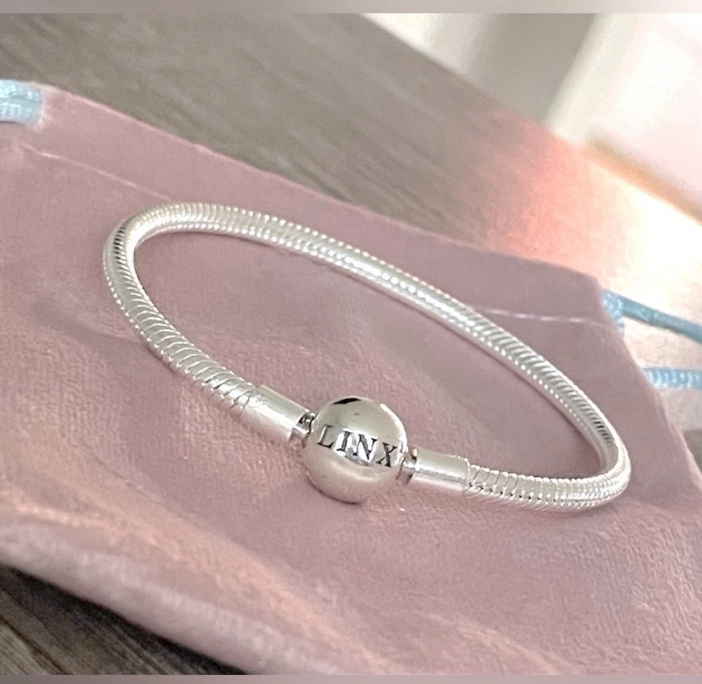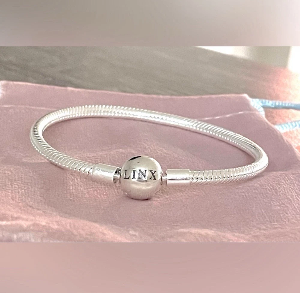 Linx snake chain style charm bracelet in 925 sterling silver, with a ball clasp featuring the signature Linx logo. Linx charm bracelets are compatible with not only Linx brand charms, but most standard size charms of other brands as well. This bracelet will new with tags, in the original Linx velvet jewelry pouch and will include a sterling silver polishing cloth. This bracelet is size 6.3 (toddler size), but is also available in sizes 6.7, 7.1, 7.5, 7.9, and 8.3 on other listings. *** PLEASE ADD 1 INCH TO THE MEASUREMENT OF YOUR WRIST AND ORDER TO ALLOW ROOM FOR THE CHARMS, AS THE CHARMS WILL CAUSE THE BRACELET TO FIT A BIT TIGHTER. Please message us with any questions about sizing prior to purchasing, we are happy to help. Selecting the appropriate sizes extremely important, as we are unable to offer sizing exchanges.