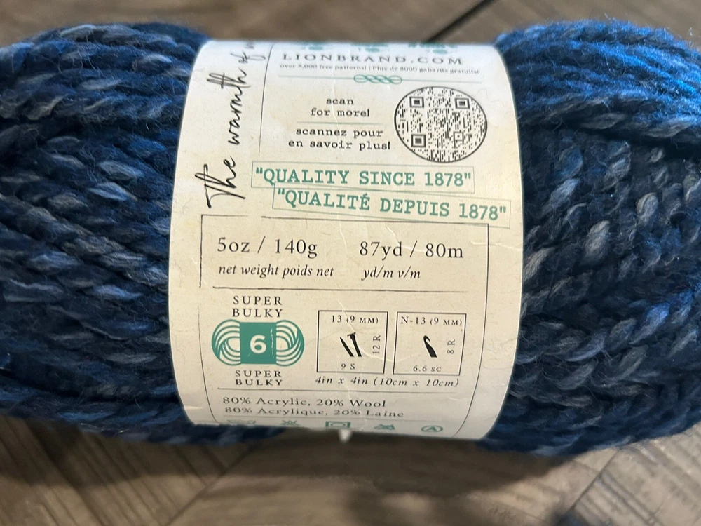 This Lion Brand Wool-Ease Thick & Quick Yarn in the River Run design is perfect for your knitting or crocheting needs. With a fiber content of 80% Acrylic and 20% Wool, this super bulky yarn is quick to create and will yield a beautiful finished product. The blue color is eye-catching and will make any project stand out. This unit of sale is in a skein shape, with a weight of 6 - Super Bulky. The product line is Wool-Ease, known for its high quality and durability. Get creative and let your imagination run wild with this versatile and stylish yarn.