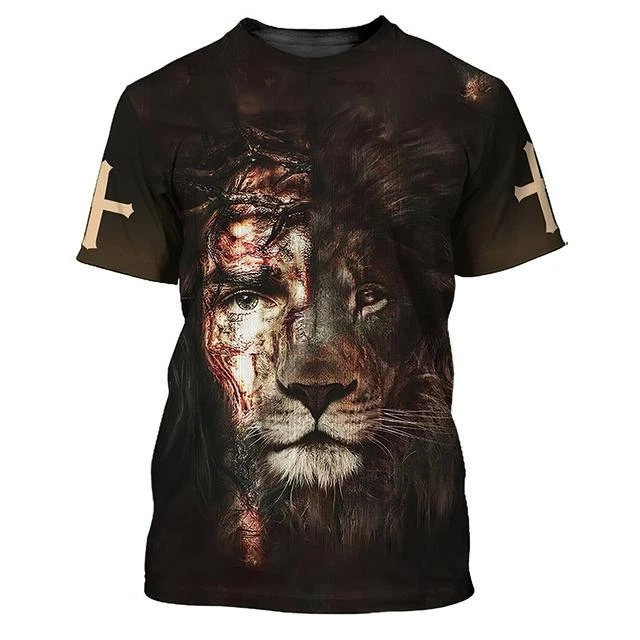 Embrace Faith: Men's Jesus Christ Lion Graphic Print T-Shirt This powerful and meaningful men's t-shirt is a testament to faith and devotion. Featuring a striking graphic print of Jesus Christ with a lion, this tee is a beautiful expression of spiritual belief. Crafted from comfortable polyester, this short-sleeve shirt is perfect for everyday wear. Whether you're attending church, running errands, or simply expressing your faith, this meaningful and comfortable tee will keep you looking and feeling great. Key Features: Powerful Jesus Christ Lion Graphic Print: A captivating design that combines the strength of a lion with the spiritual devotion of Jesus Christ. Short Sleeves: Ideal for warm weather and everyday wear. Round Neckline: Classic and stylish for any occasion. Regular Fit: Ensures a comfortable and flattering look. Machine Washable: Easy care for hassle-free maintenance. More than just a t-shirt, it's a statement of faith. Make a bold statement with this unique and eye-catching tee. Available in a variety of sizes to ensure the perfect fit. Don't miss out on this opportunity to add some meaning to your wardrobe! Additional Details: Theme: Outdoor Character: Jesus Christ Character Family: Jesus Material: Polyester Pattern: Graphic Print Size Type: Regular Vintage: No Country/Region of Manufacture: China Accents: Print Fabric Type: Broadcloth Product Line: Men's Graphic Print T-Shirt Lion Jesus Christ Design Sizes XS-6XL Handmade: No Garment Care: Machine Washable Style: Casual Sleeve Length(cm): Short Item Type: Tops T-shirt Style: Tees Collar: O-neck Pattern Type: 3d T Shirt Type23: Jesus Christ T-shirt Wear your faith with pride - get yours today! Please kindly note that, sizes are Asian sizes, Usually 1-2 sizes smaller than EU, UK, US, & AU sizes depending on the fit you are after.
