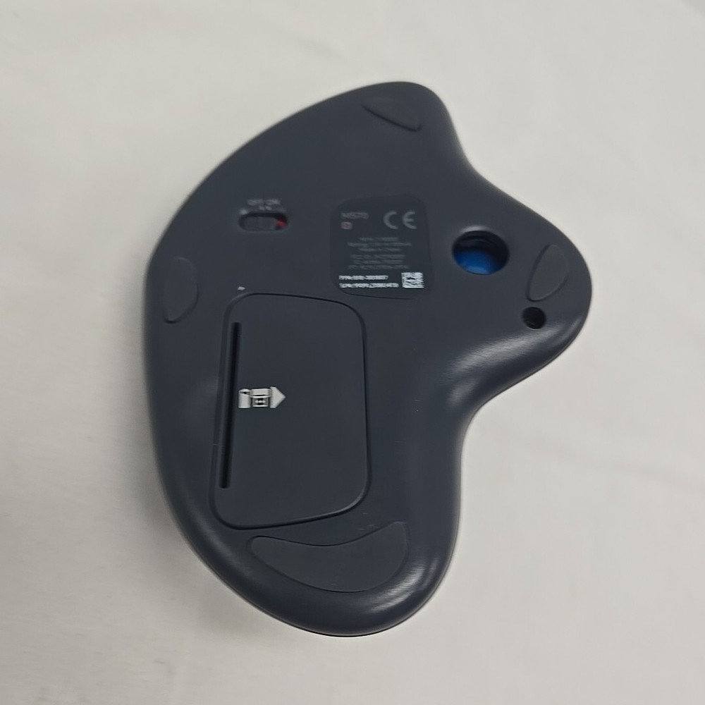 Logitech M570 Wireless Ergonomic Trackball Mouse Featuring Blue Ball and USB Receiver Dongle for Comfortable and Precise Navigation