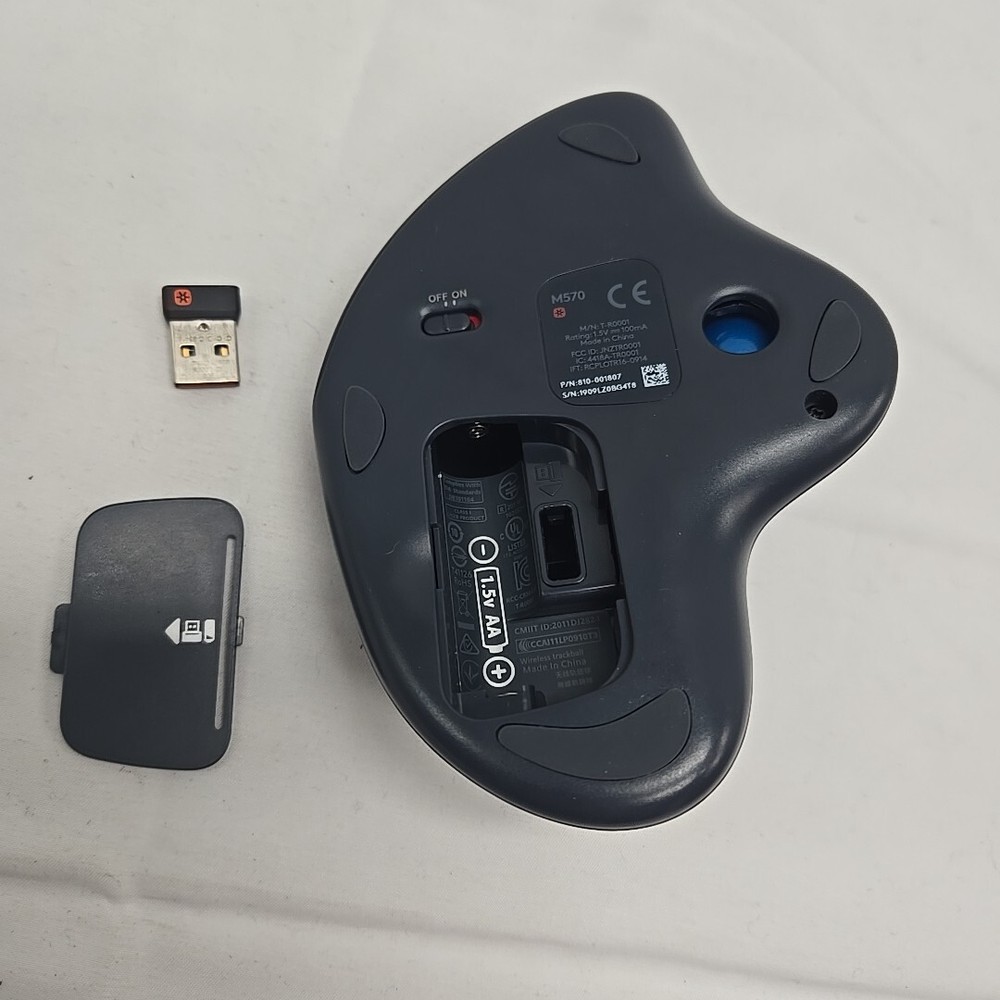 UPC:Does not applygtin13:Does not applyType:TrackballTracking Method:LaserBrand:LogitechNumber of Buttons:4Features:Battery Status Indicator, Ergonomic, On/Off Switch, Right-Handed only, Scroll Wheel, Thumb ButtonModel:Trackman M570Connectivity:WirelessColor:Gray
