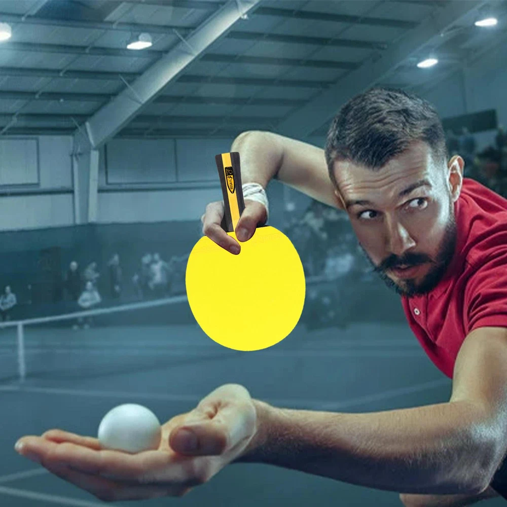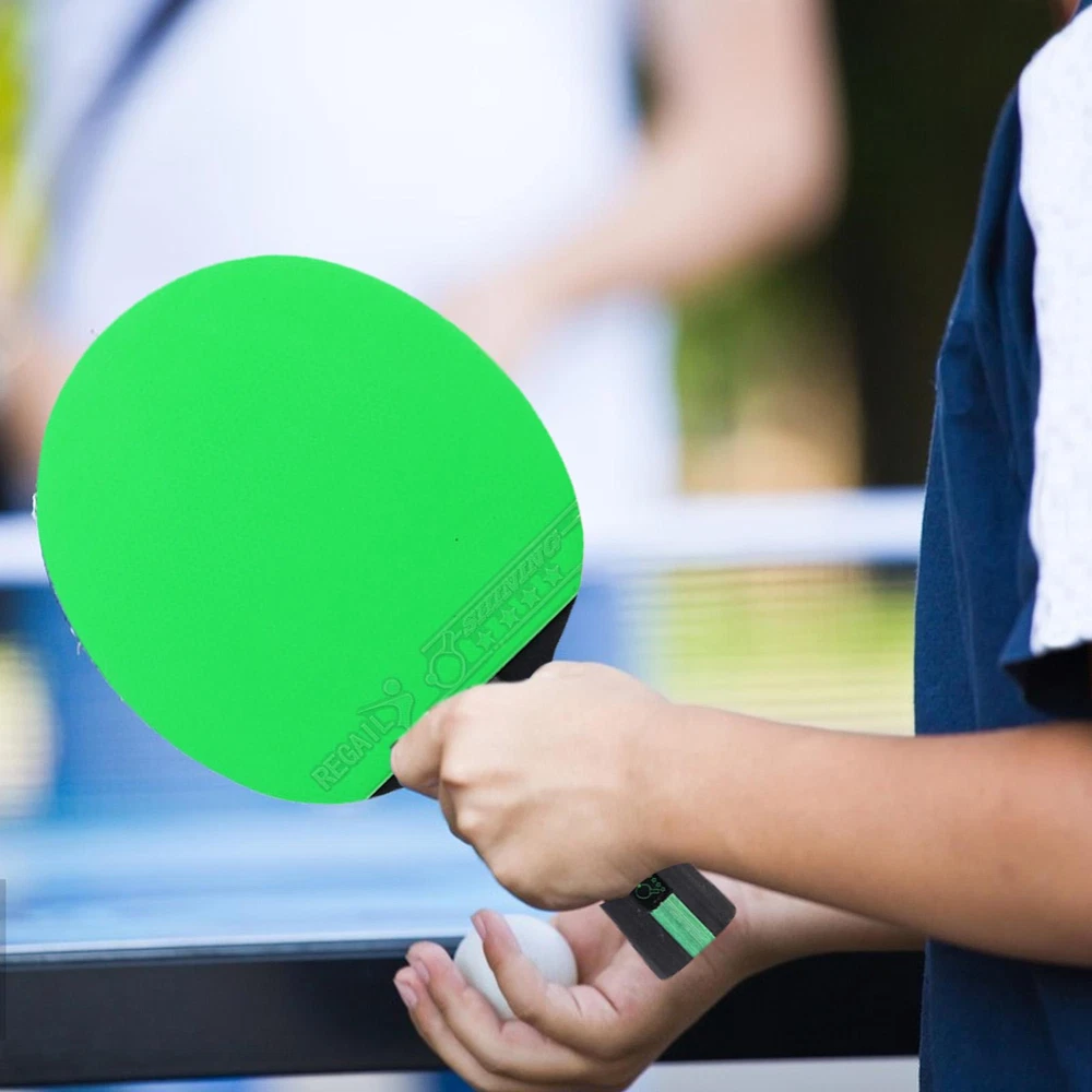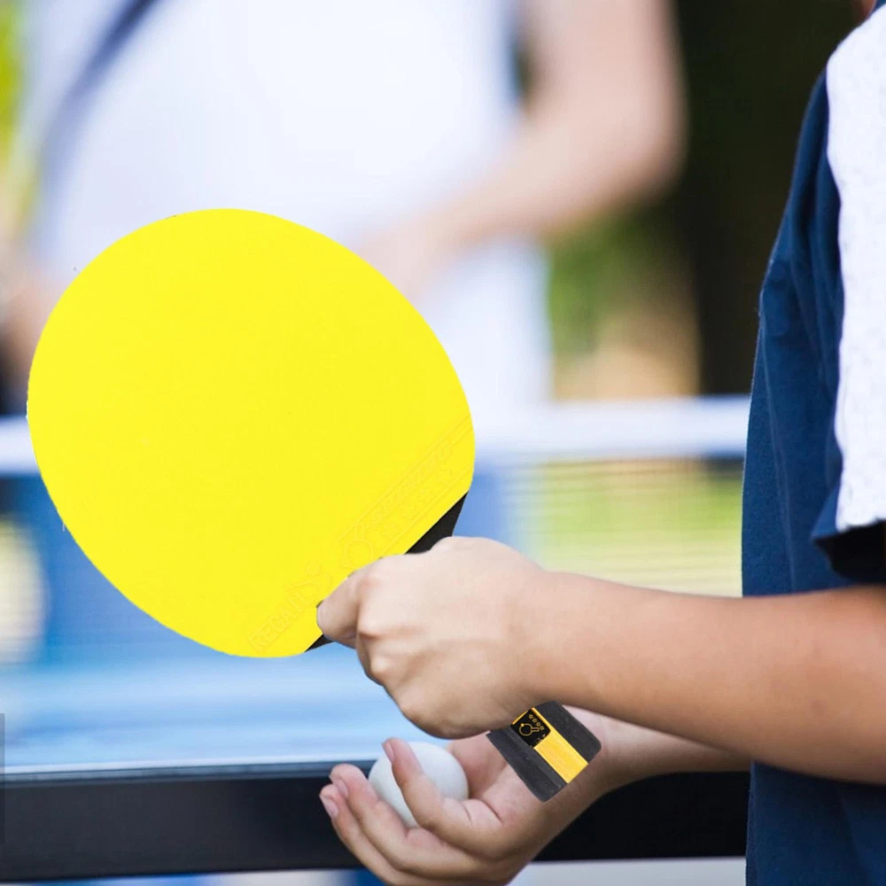 Bullet Points: Ergonomic Design: The handle of the table tennis racket is coated with rubber, which makes it feel very natural; Ergonomically designed to provide you with a comfortable holding experience. Sturdy and Long-lasting: With the high-quality poplar wood construction, the table tennis racket is shockproof, will not easy to break, it will look the same for years to come. Professional and Advanced: The ping-pong racket has a highly elastic sponge and two layers of thick rubber. This makes these table tennis rackets have strong hitting force, fast rebound speed, and good directionality. Lightweight and Portable: The table tennis paddles are small and are easy to put in the backpack, and easy enough to store, making your go-out more convenient. Wide Range of Application: Great for multiple people's use, the table tennis paddle is suitable for beginners, intermediates, and well-rounded players. Features: 1. Soft composite handle with rubber coating on the handle makes it more comfortable to hold. 2. Made of high-quality poplar, it improves speed and ball control performance. 3. Table tennis rackets are waterproof, shockproof, and durable. 4. It is very suitable for beginners as an exercise. Specification: Name: Table Tennis Racket Type: horizontal racket Base plate: black poplar Configuration: color cow tendon rubber cover Single racket weight: about 160g Product size: about 25*15*1.3cm/9.84*5.91*0.51in Packing List: Table Tennis Racket*1 Notes: 1. Due to the different monitor and light effects, the actual color of the item might be slightly different from the color which is showed in the pictures. 2. Please forgive a slight measuring deviation due to manual measurement.