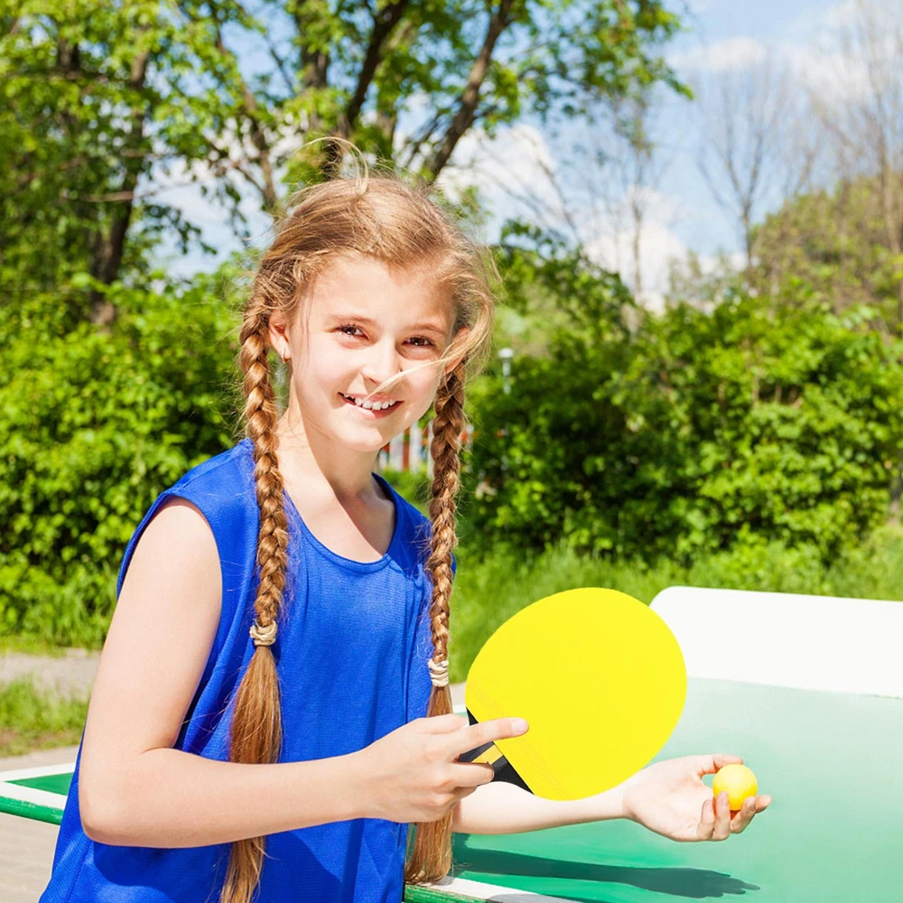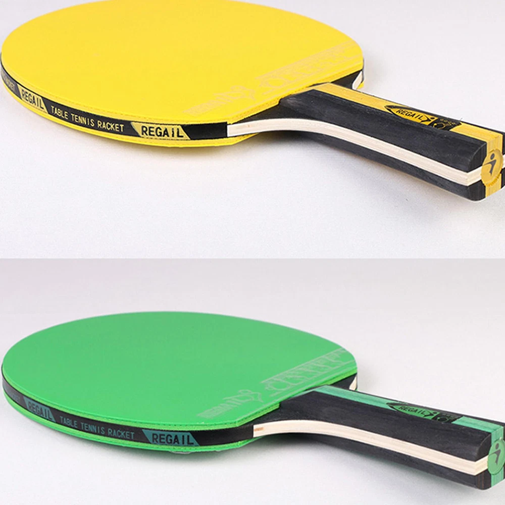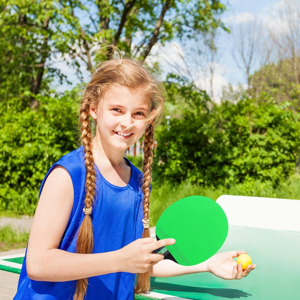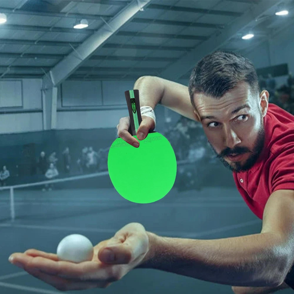 Bullet Points: Ergonomic Design: The handle of the table tennis racket is coated with rubber, which makes it feel very natural; Ergonomically designed to provide you with a comfortable holding experience. Sturdy and Long-lasting: With the high-quality poplar wood construction, the table tennis racket is shockproof, will not easy to break, it will look the same for years to come. Professional and Advanced: The ping-pong racket has a highly elastic sponge and two layers of thick rubber. This makes these table tennis rackets have strong hitting force, fast rebound speed, and good directionality. Lightweight and Portable: The table tennis paddles are small and are easy to put in the backpack, and easy enough to store, making your go-out more convenient. Wide Range of Application: Great for multiple people's use, the table tennis paddle is suitable for beginners, intermediates, and well-rounded players. Features: 1. Soft composite handle with rubber coating on the handle makes it more comfortable to hold. 2. Made of high-quality poplar, it improves speed and ball control performance. 3. Table tennis rackets are waterproof, shockproof, and durable. 4. It is very suitable for beginners as an exercise. Specification: Name: Table Tennis Racket Type: horizontal racket Base plate: black poplar Configuration: color cow tendon rubber cover Single racket weight: about 160g Product size: about 25*15*1.3cm/9.84*5.91*0.51in Packing List: Table Tennis Racket*1 Notes: 1. Due to the different monitor and light effects, the actual color of the item might be slightly different from the color which is showed in the pictures. 2. Please forgive a slight measuring deviation due to manual measurement.