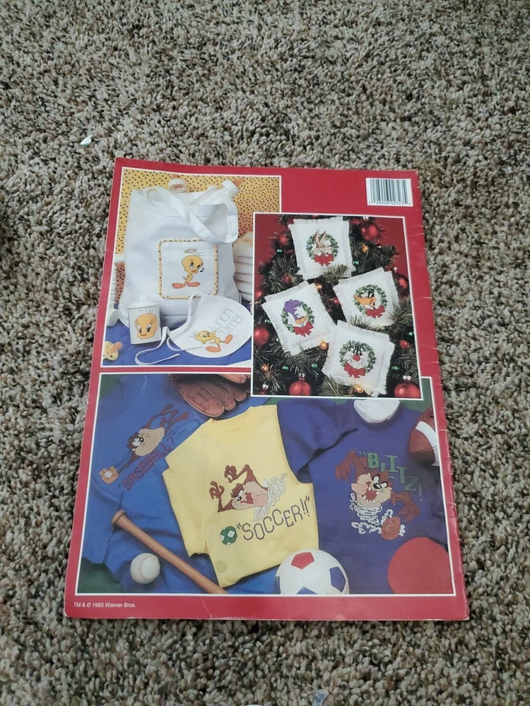 This cross stitch book features 37 designs inspired by the classic cartoon characters of Looney Tunes. It was published in 1995 by Leisure Arts and is model number 2723. The book is perfect for anyone who loves to create handmade crafts with a touch of nostalgia. The designs include various Looney Tunes characters and can be used to make clothes, home decor, and other cross stitch projects. The book was made in the United States and belongs to the Crafts and Needlecrafts & Yarn categories on eBay. Get ready to let your creativity run wild with this fun and colorful cross stitch book!