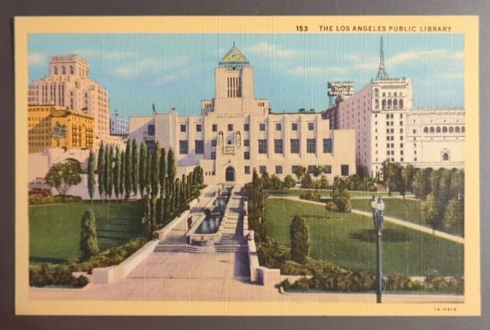 Vintage Linen Souvenir Postcard Los Angeles Public Library California c1940. There may be wear on the edges or a bent or torn corner, staining or writing on the card, creasing, or the card may have a cancellation mark. Most of the postcards I sell are 50 to 100+ years old and will never be perfect. Please examine the photos carefully for condition information. All postcards with a value of less than $20 are shipped via eBay Standard Envelope with a 2 mm postcard sleeve and a piece of cardstock on either side, taped closed with masking tape and placed in a heavy cardboard mailer. Postcards with a value of more than $20 are sent Ground Advantage in a 2 mm postcard sleeve, sandwiched between cardboard and shipped in a padded polybag. Both methods are provided with tracking.
