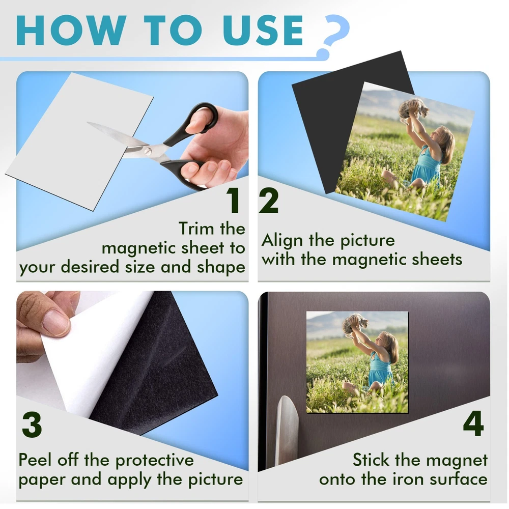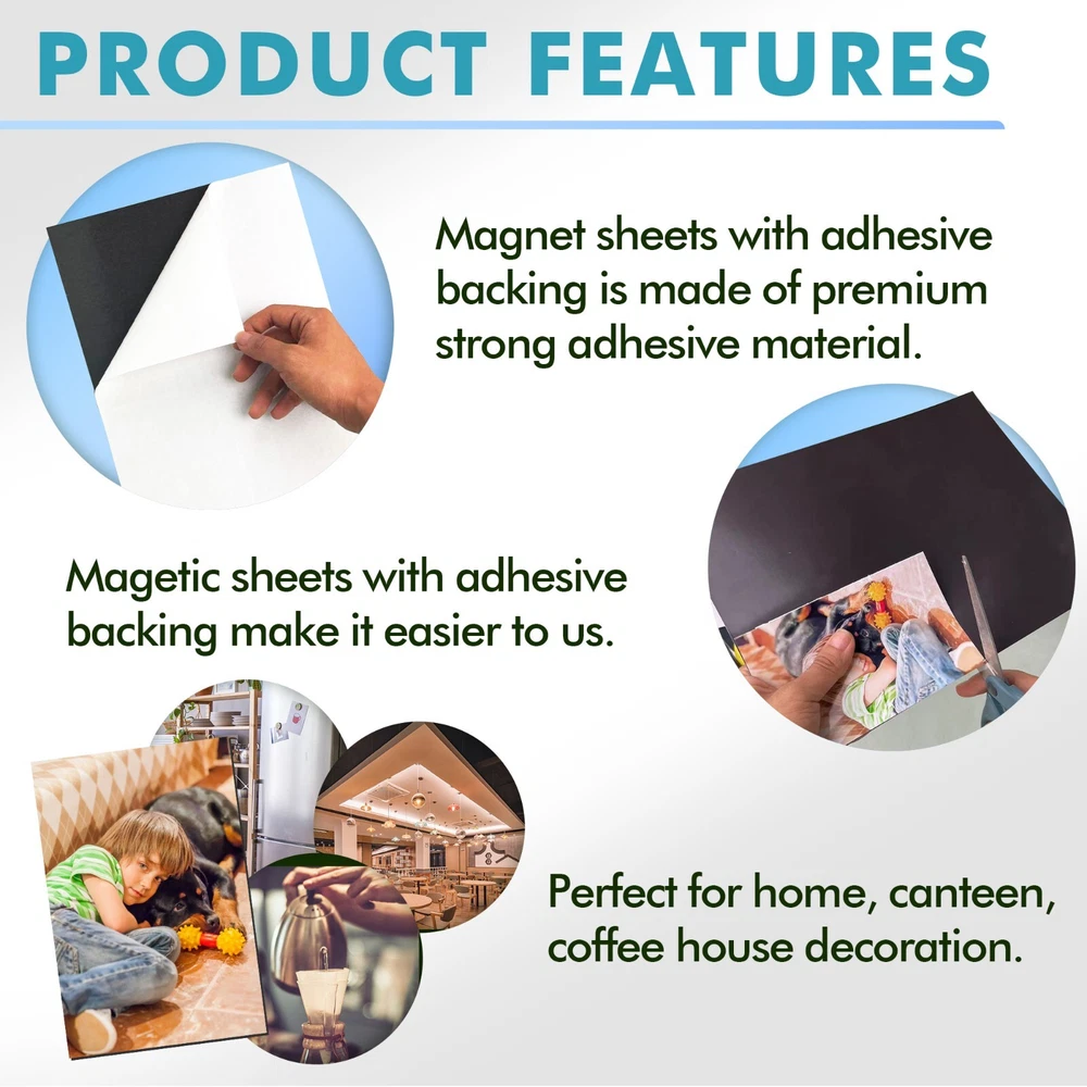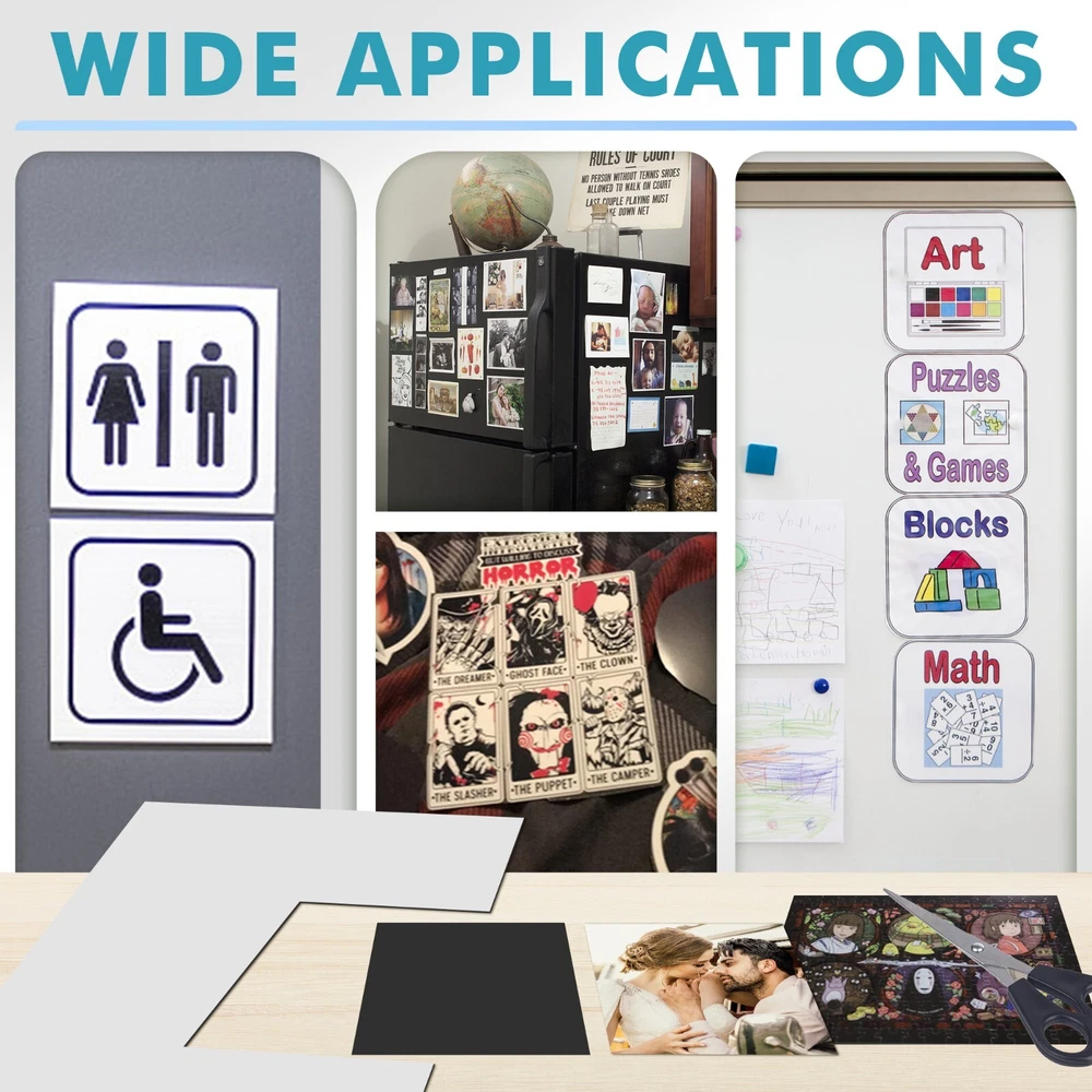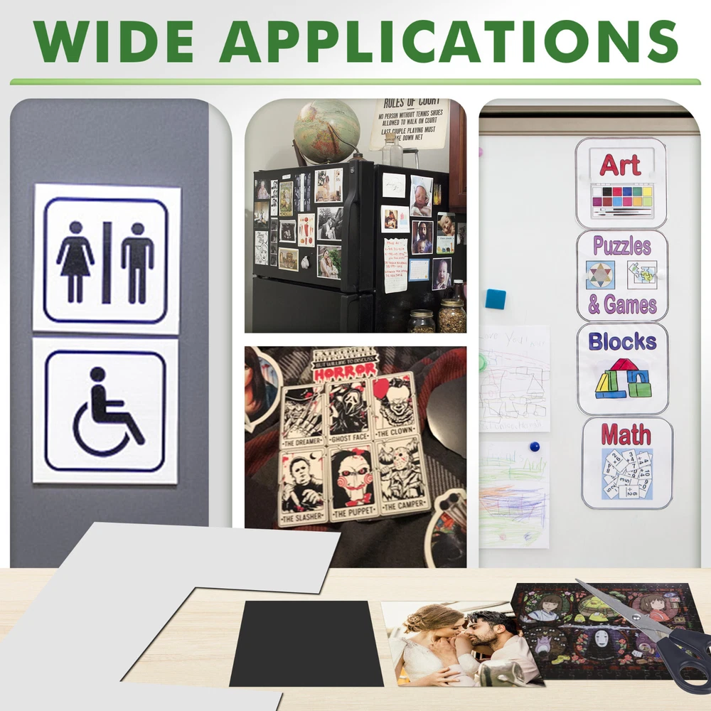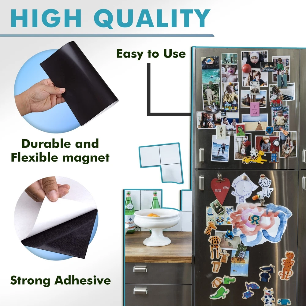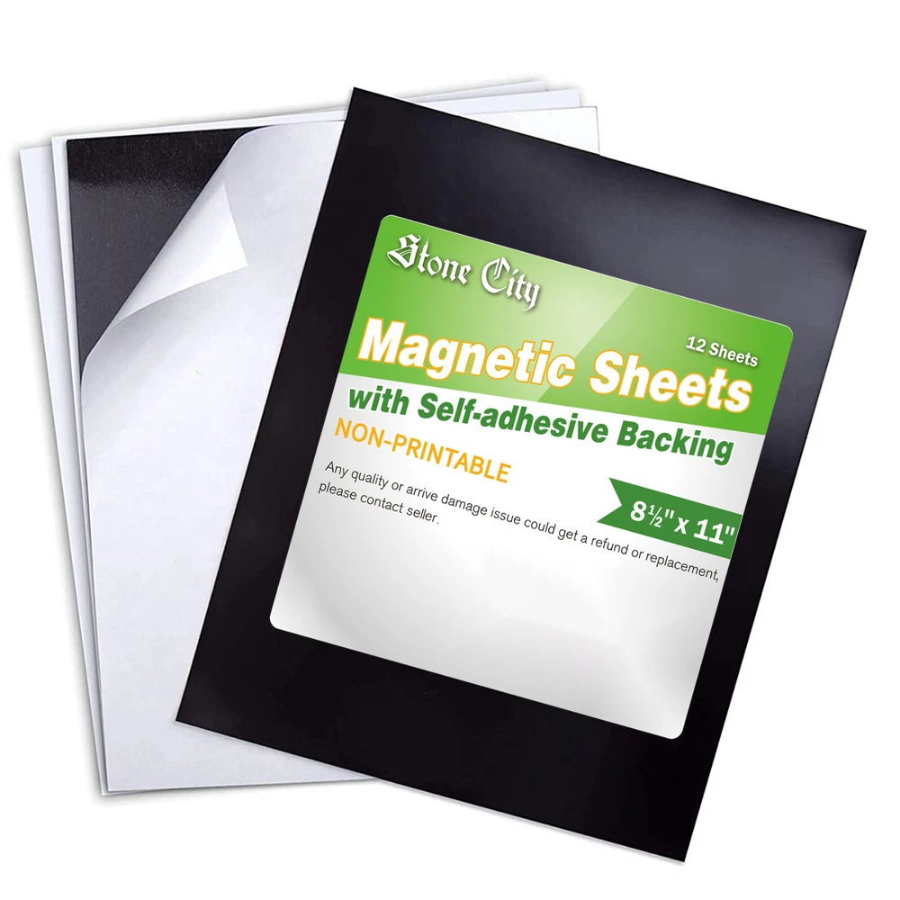 View more great items Personalized magnets are a breeze to create with Stone City Magnetic Sheets. Whether you want to design decorative magnets containing your favorite family pictures or something a little more functional like magnetic business cards, all you need is a little creativity to get the ball rolling. No templates are required for this product; if your project fits on an 4x6" , 5"x7", 8x10 or 8.5"x 11" sheet, place it anywhere on the page and use scissors or an electronic die-cutting machine like Cricut or Silhouette to extract your design. Magnet sheets are lightweight and stick to iron surfaces only, allowing you to come up with creative organization solutions such as magnetic labels for a standing toolbox or a dishwasher magnet. They can also become a fun craft project for kids, turning their favorite cartoon characters into your next refrigerator magnet. DIY your own magnetic sheets now !!! Stone City is the one of leader in the craft magnets. This new launched Magnetic Sheet with adhesive backing been tested with high quality & strong self-adhesive magnet sheets; PREMIUM QUALITY Material with Long Lasting Adhesive Magnet! Practical magnetic sheet dimensions – 5"x7",8" x 10", 8.5x11" thick 20 Mils or 4" x 6" (12 Mils). Peel magnetic sheets can be cut to any size, for any project easily with scissors or cutting machines; STRONG, DURABLE & FLEXIBLE self-adhesive magnetic strips with 350 Gauss - Stronger than other competitors out there! Sticks great to any iron surfaces; EASY TO CUT AND INSTALL. Magnetic sheets with adhesive backing are ideal for creative kid projects, decoration fridge magnets, photo magnets, magnetic photo frames, chalkboard, whiteboards, dry erase boards, magnetic pages, cuttable picture magnets, magnetic picture clips, wall magnetic paper, refrigerator magnets, adhesive magnets, magnetic squares, etc. PLEASE NOTE : Magnet sheets primarily work on iron or other ferromagnetic surfaces, which are materials that can be magnetized or attracted to a magnet, such as iron, nickel, and cobalt. They do not work on non-magnetic surfaces like aluminum, plastic, wood, or most stainless steels. We offer 30 Days money back and 24 hours online service, Buy with confidence NOW ! Tips: 1. ONLY works on IRON surfaces; Not for car bumper; 2. If you use outdoors, please add extra protection for the image you stick on. 3.Please contact seller if you have any questions about this products.