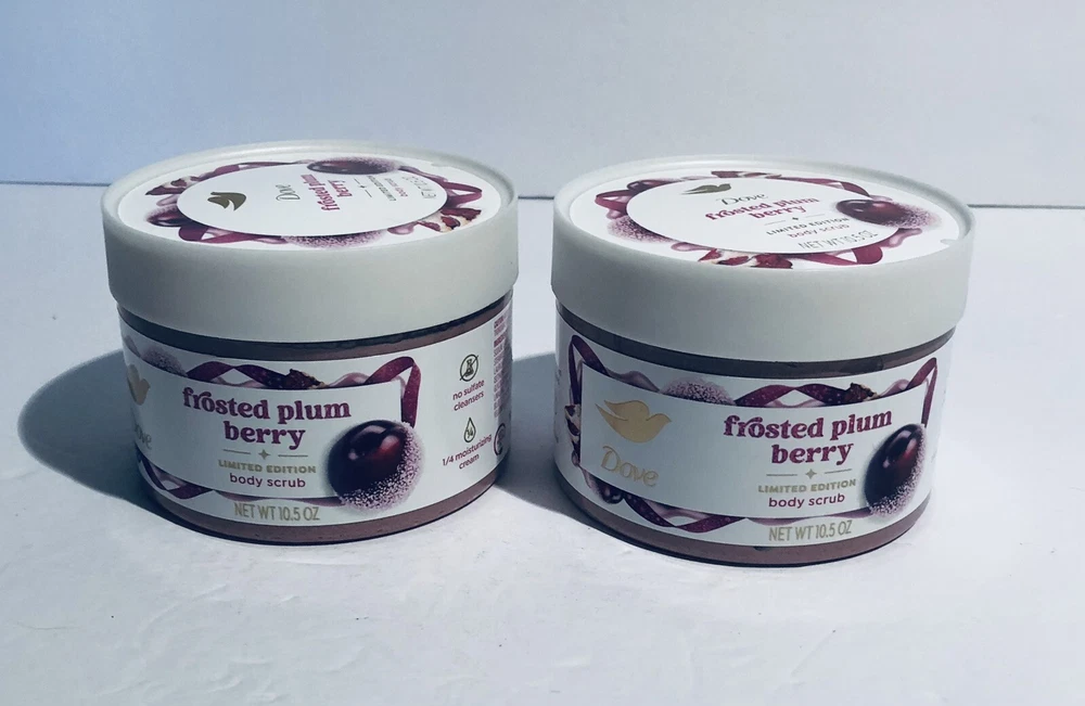 Lot Of 2 Dove Body Scrub FROSTED PLUM BERRY Limited Edition 10.5 oz Each. Condition is Brand New. Comes with everything you see in the pictures only. Please view pictures to evaluate for yourself. Shipped via USPS Ground Advantage.
