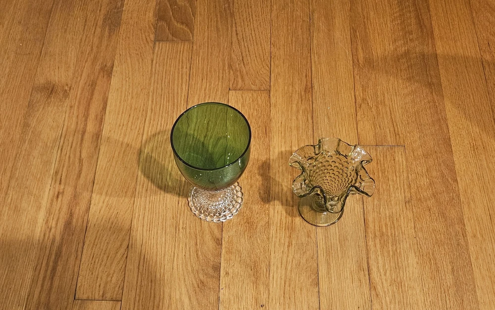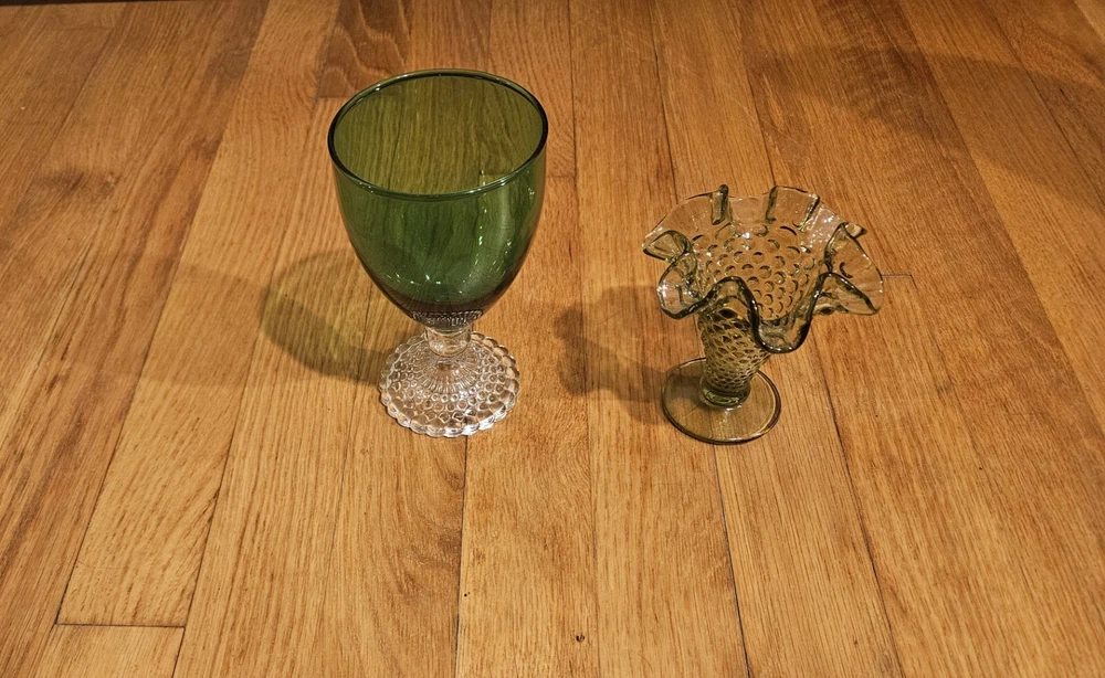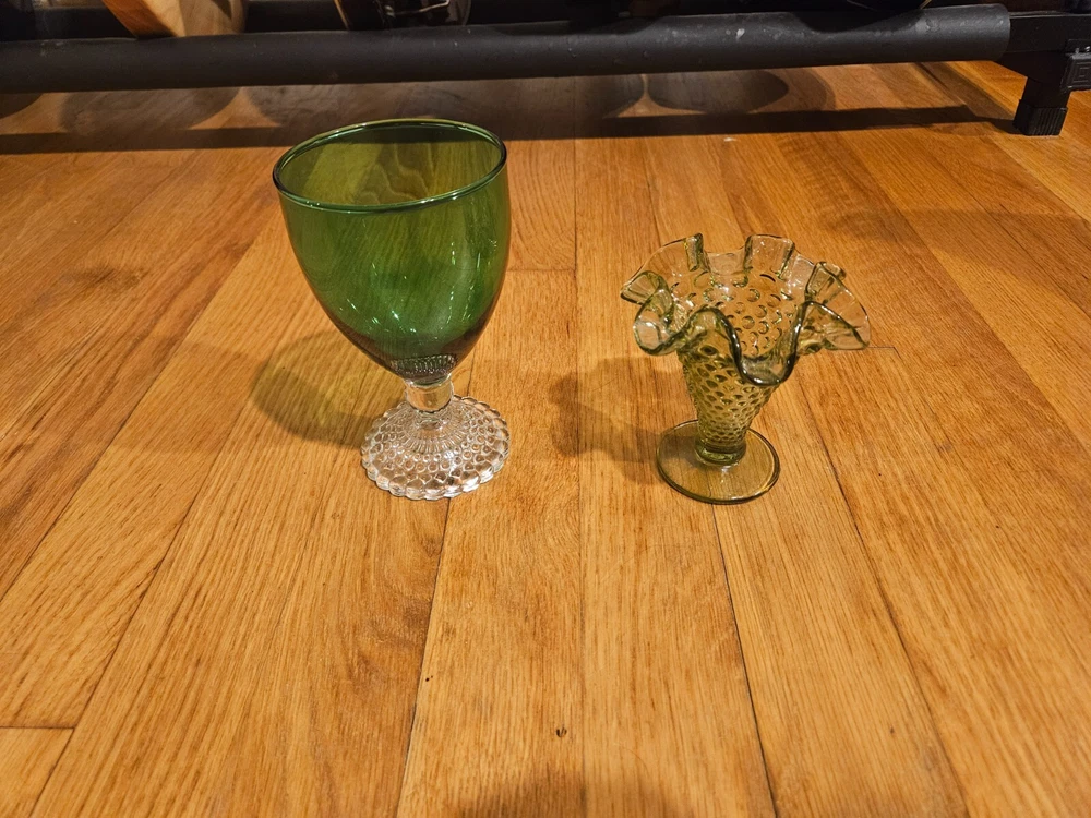 Lot Of 2 Green Glassware Cup & Vase. All Glass In Good Condition.