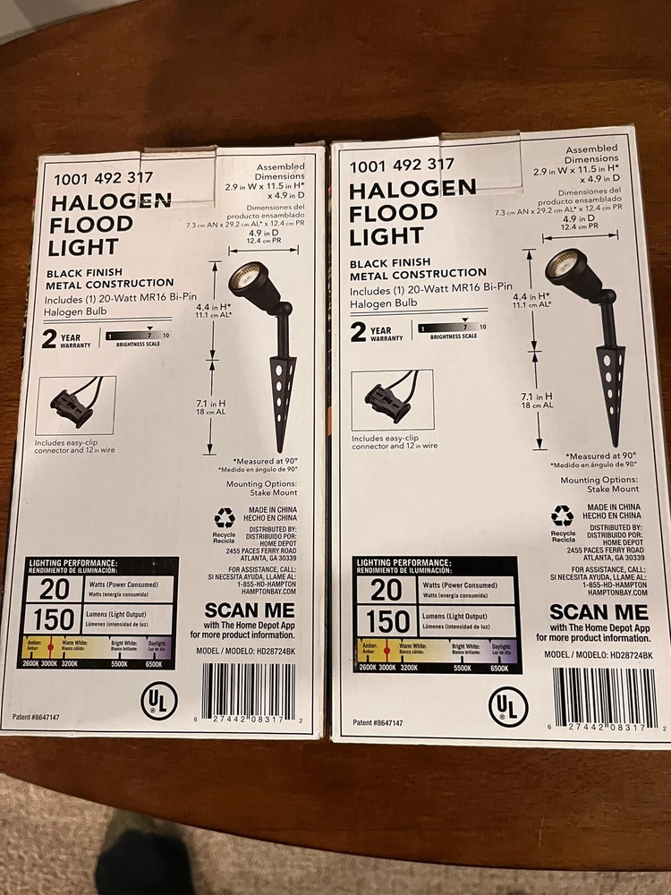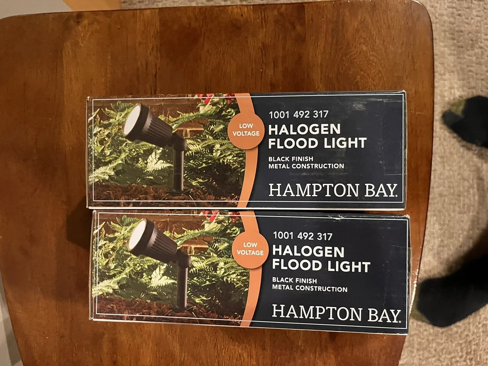 Illuminate your outdoor space with this lot of 2 Hampton Bay Low Voltage Flood Lights in sleek black. The glass material and corded electric power source make it a durable and reliable choice for any outdoor installation area. These floodlights features a low voltage design for energy-efficient and safe lighting. The floodlight is designed for easy installation and comes with a manufacturer part number of HD28724BK. Enhance your outdoor lighting with this stylish and functional floodlight.