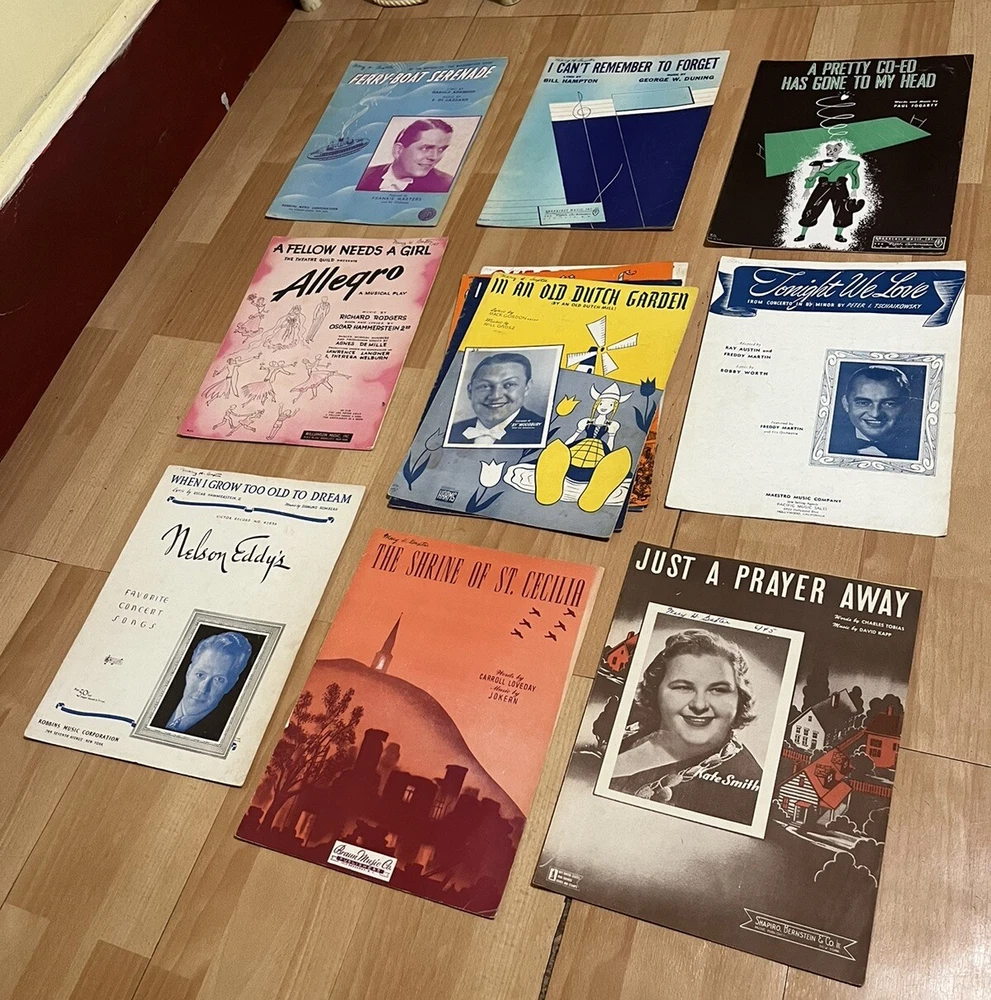 Vintage Antique Sheet Music Lot Of 30 Vintage Antique Sheet Music 1900’s Ephemera They were found in a box during an estate cleanout in upstate New York. The condition varies. I am selling them "as is, as found". They are mostly 12 1/2" long by 9" wide. Discover a treasure (see photos). I am setting a very low opening bid with no reserve . Please ask questions . Message me through eBay messaging. It is the easiest and fastest way for me to respond. International bidders contact me before bidding. Payment PayPal or major credit card through PayPal. Shipping $6.00 shipping with tracking and insurance. All items shipped within 2 business day from time of received payment.