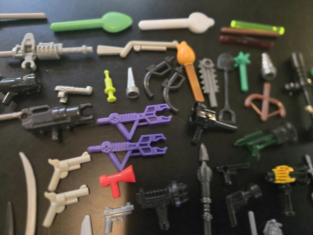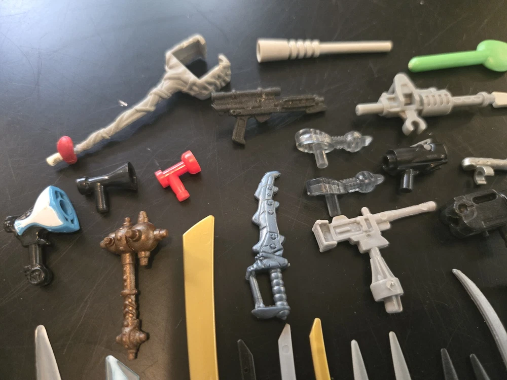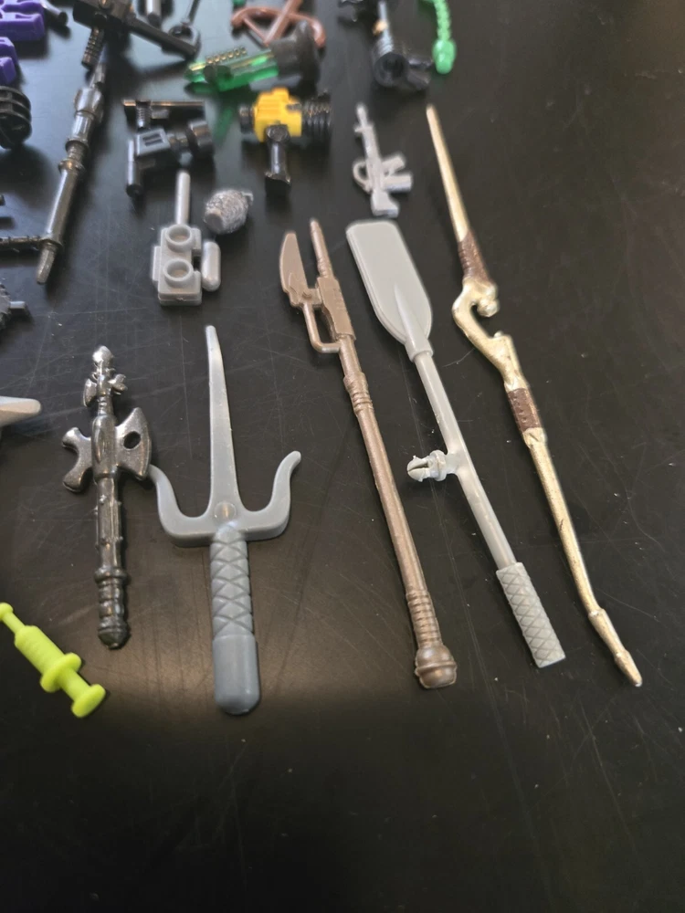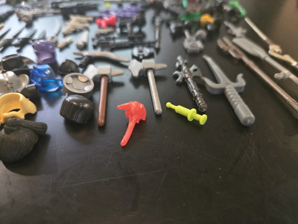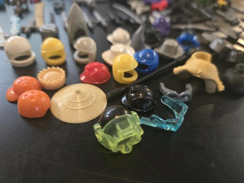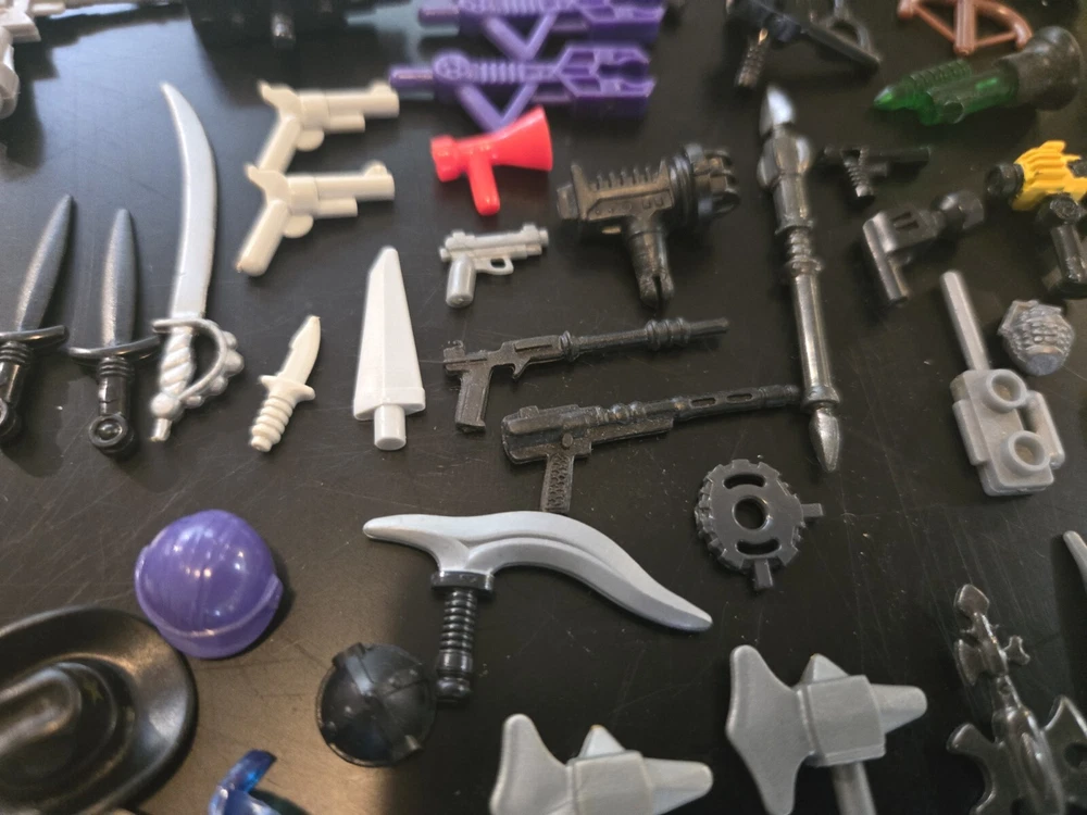 Feel free to ask questions or for more photos. Ai description below This lot includes over 80 pieces of action figure weapons and helmets from various brands such as Lego, Mega Bloks, and other. The assorted color pieces are made of plastic and are compatible with LEGO. The lot features a bulk lot of products, including items from the Halo character family and the Call of Duty product line. Suitable for ages 6 and up, this lot is perfect for building toy enthusiasts and collectors alike.
