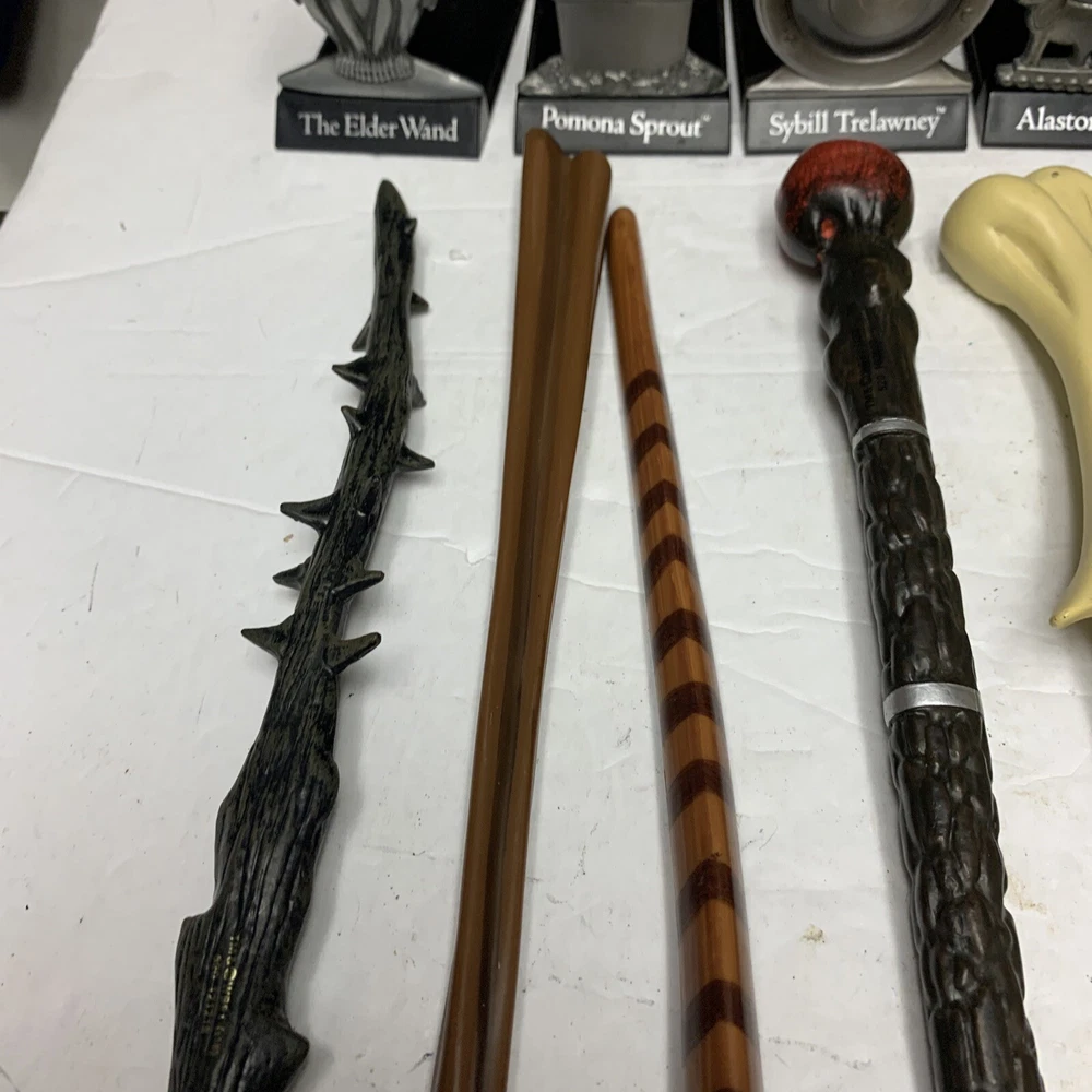 The items have some signs of wear and use to them. There is marks in various places and a bend to the one wand. There is only 8 bases and there is a duplicated base and a base without a metal part. See pictures to see the items.
