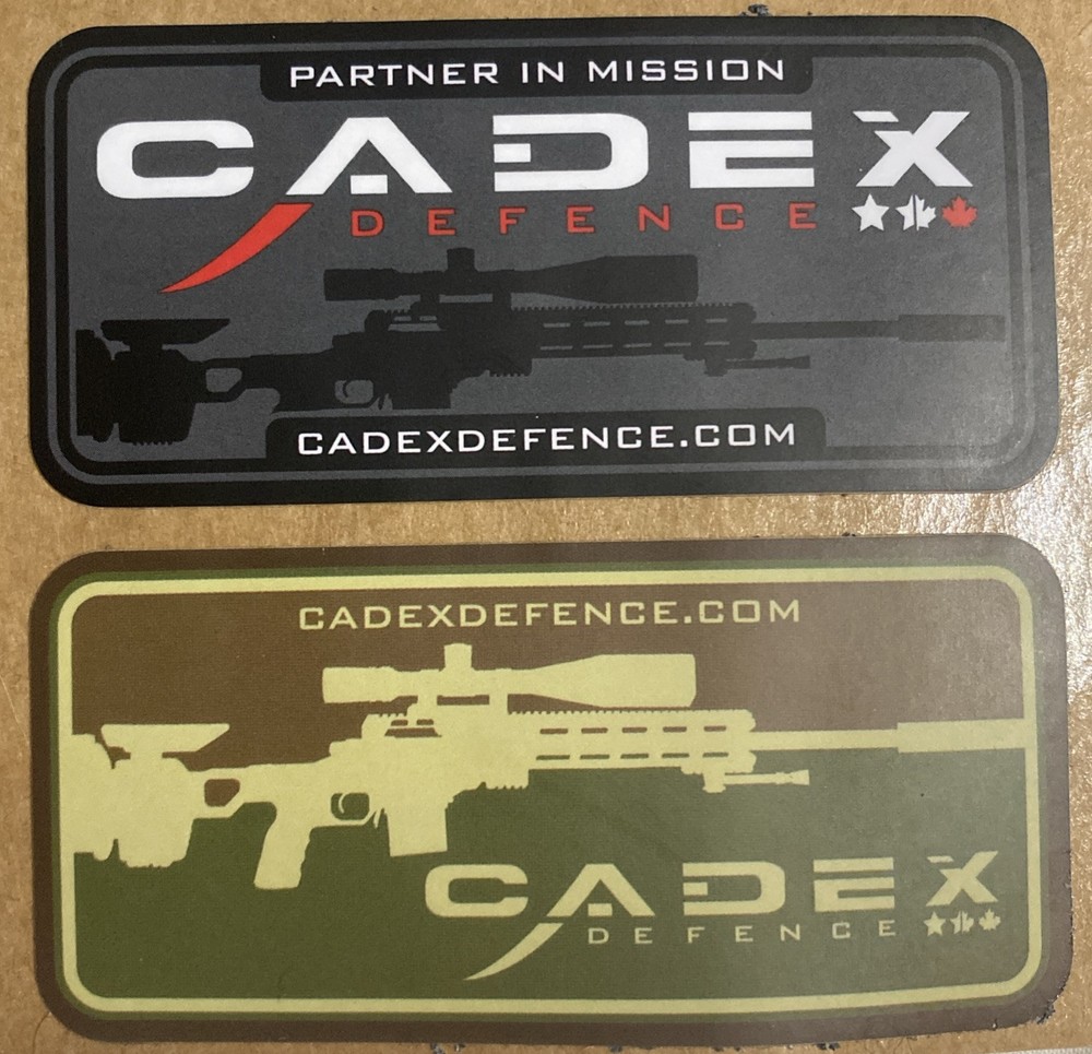 Cadex Defence 2 items from Cadex Defence (2024 NRA) (1) PVC Morale Patch (1) Sticker / Decals Sheet with 9 separate decals / stickers FREE SHIPPING