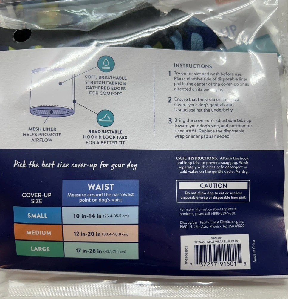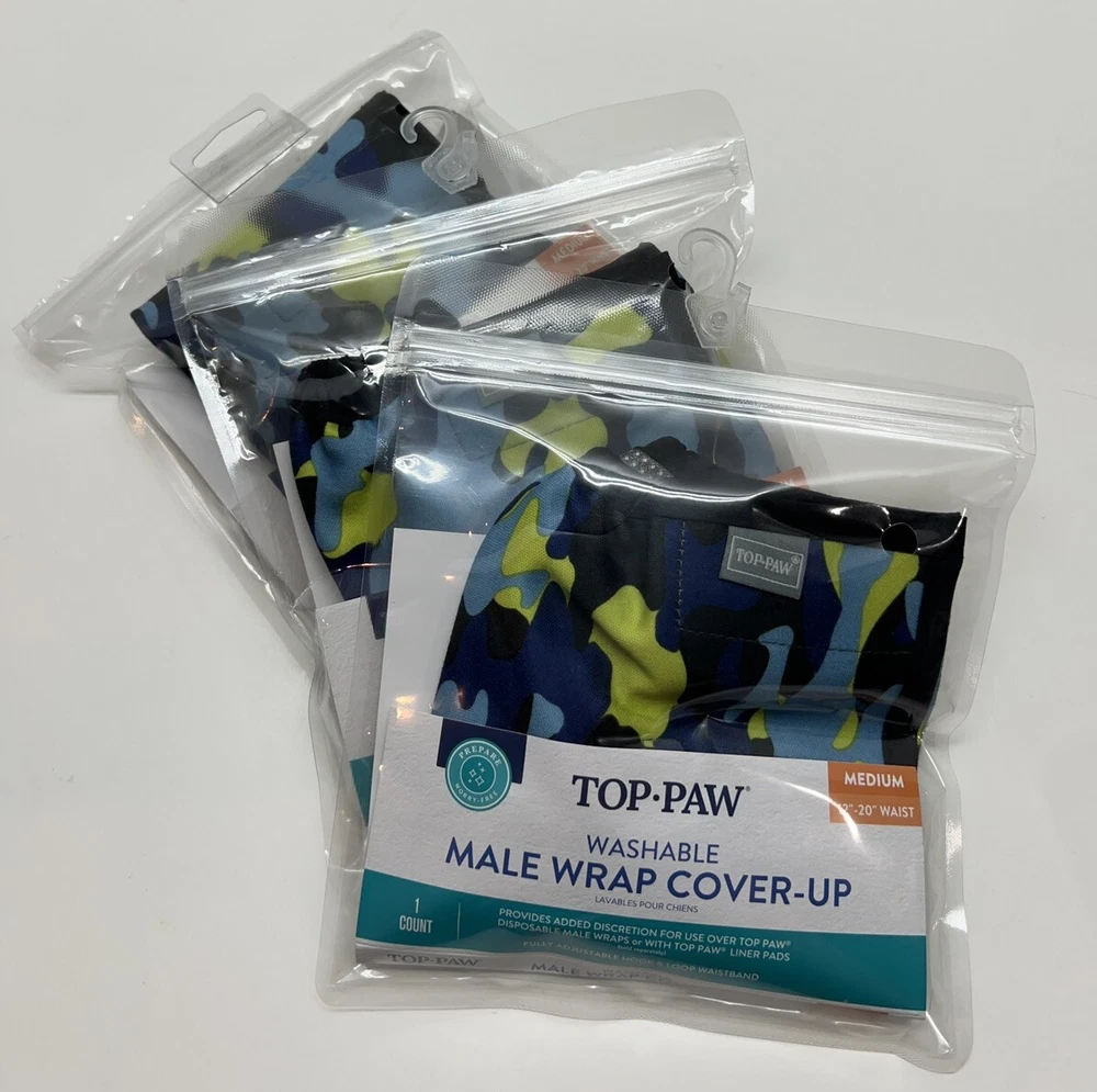 Lot of 3 Open Top Paw Dog Washable Male Wrap Cover Up Medium 12” - 20” Waist. Open store stock. Listed as new with defects due to the open packaging.