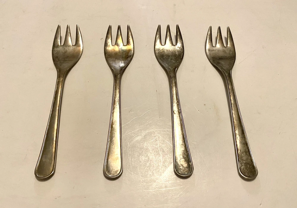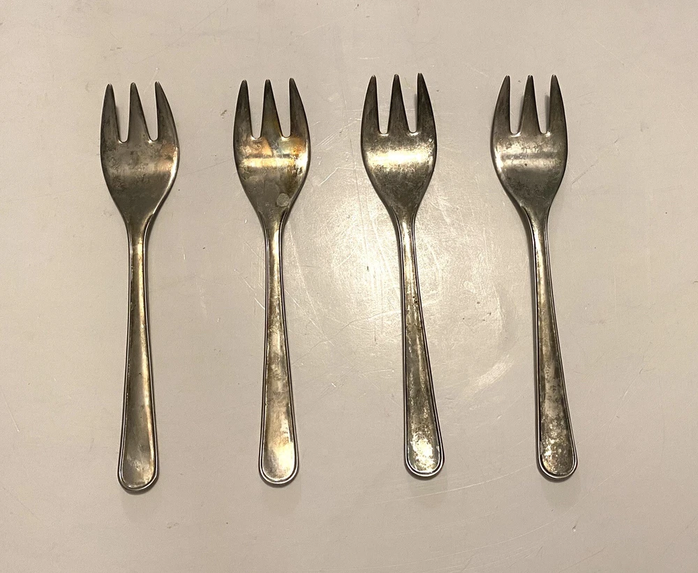 Lot of 4 Vintage Leonard Silver Plated Baby Forks. Condition is Used. Signs of normal wear and tear with aging. About 5”. Please look closely at photos and ask any questions prior to purchasing.