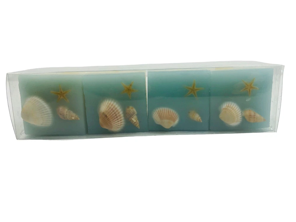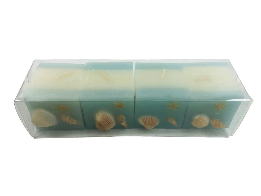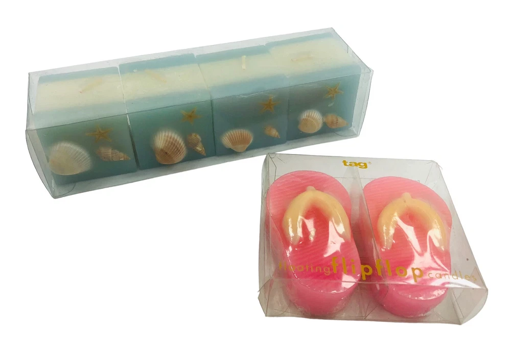 * LOT of Wax Candles in Box - 4 Squares with Sea Shells & Set of Flip Flop Sandals * CONDITION is PRE-OWNED EXCELLENT * Please see ALL Pictures for any normal signs of wear * APPROXIMATE DIMENSIONS: Square Candle Set 8" x 2", Flip Flops 4" x 3" * SHIPS with USPS GROUND ADVANTAGE * 30 DAY Returns Accepted * INTERNATIONAL Returns NOT Accepted