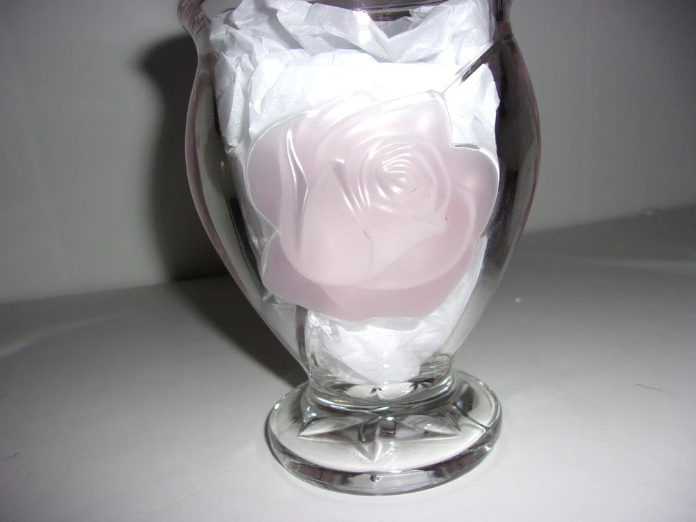 ~~~WELCOME & THANK YOU FOR SHOPPING WITH ME~~~ This offer is for a Teleflora vase that is made of crystal clear, heavy glass. It has lovely roses in frosted pink on the sides. This piece measures 6 in. tall and the top opening is 6 in. in diameter. Barely used, still in great condition. It is unmarked but there is a tiny no. 12 etched on the bottom. We offer NEXT DAY SHIPPING! ~~~I will recycle shipping/packing materials whenever possible. This saves you money and helps protect our environment~~~ IMPORTANT: I am very selective in my purchases and my intention is to offer only the best of merchandise, whether it is new, used or vintage. I try very hard to find and disclose any defects or imperfections. If I should miss something, please contact me right away. Customer satisfaction is my #1 priority! I use EBay shipping labels which include tracking numbers. My home is smoke and pet free. ~~~A HEARTFELT THANK YOU TO ALL MY LOYAL CUSTOMERS FOR YOUR GREAT EMAILS, FEEDBACK AND CONTINUED PATRONAGE! YOU ARE THE BEST~~~ Check out my other items Be sure to add me to your favorites list !
