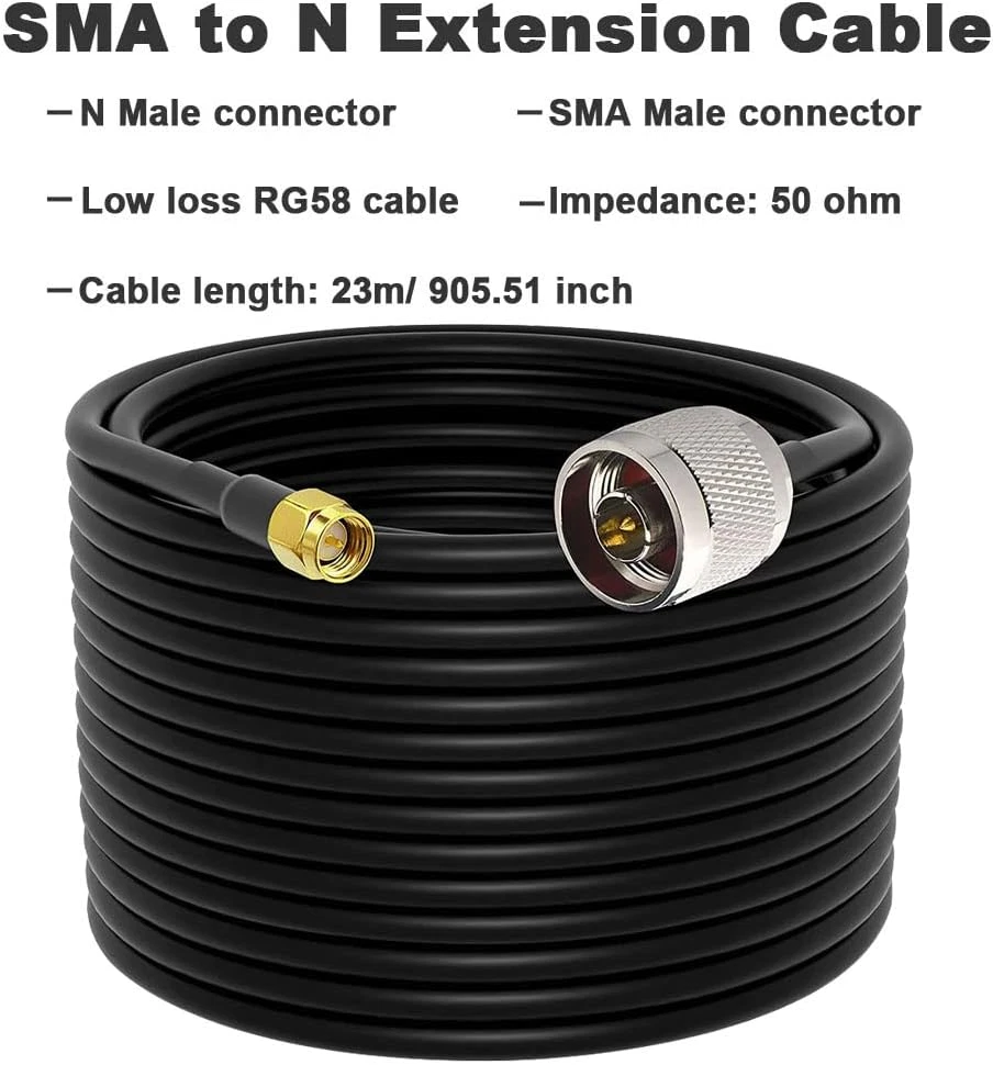 Store New Arrivals Add to Favorite View Feedback Contact Low Loss RG58 N Male to SMA Male Antenna 75FT RF Coaxial Cable and Two-Way Radio Applications Pure Copper 50 Ohm Cable for 3G/4G/5G/Lte/Ads-B/Ham/Gps/Wifi/Rf Radio to Antenna Description Item model number JYA-006-X Unit Count 1 Count Data Transfer Rate 50 Ohm Indoor/Outdoor Usage Outdoor, Indoor Number of Items 1 Color Black Cable Type RG58 Coaxial Antenna Cable Country of Origin China Connector Type RF Connector Compatible Devices For 3G/4G/LTE/Ham/ADS-B/GPS/RF Radio to Antenna or Surge Arrester Item Weight 3.61 pounds Shape Round Number of Pins 1 Model Name JYA-006-X Recommended Uses For Product function(f) {var _np=(window.P._namespace("DetailPageProductOverviewTemplatesJava"));if(_np.guardFatal){_np.guardFatal(f)(_np);}else{f(_np);}}(function(P) { P.when('A').execute(function(A){ A.on('a:truncate:po-attribute-truncate-4:updated', function(data) { var isTruncated = !data.truncateInstance.getIfTextFits(); var seeMoreElement = document.getElementById('po-attribute-see-more-id-4'); if(seeMoreElement) { seeMoreElement.style.display = isTruncated ? '' : 'none'; } }) });})); Connecting outdoor antennas or radio equipment to indoor amplifiers, receivers, meters, radio transmitters, and WiFi signal booster repeaters; ADS-B receivers; RF Radio to Antenna applications See more Package Type sealed anti-static bag Connector Gender Male-to-Male Package Dimensions 11.81 x 7.48 x 2.56 inches Size 75FT Ultra Low Loss Antenna Extension Cable for PCI Card, Access Point,Connect from SMA Equipment to N-Style Antennas, receivers, meters, radio transmitters and WiFi Signal Booster Repeater. RG-58 Pure Copper Coaxial Cable Low Loss for RF Connections,Made with quality, low-loss RG58, which means far less attenuation than cables made from thin RG316 or RG174. Don't settle for less especially if you have a significant investment in antennas Total length: 75FT,50 Ohm Connector Type : N Type Male, SMA Male(Pin inside) RG58 offers a significantly larger center conductor and supports better signal retention for longer cable runs and higher frequency use. Cable length(Optional):75FT,contact for other length Cable type: RG58 Connector type(Optional):SMA&N,contact for other connector type N male to SMA male cable is an excellent cable to connect outdoor antenna or remote antenna to indoor amplifier. N type connector allows you to connect devices with N female connector, such as antenna, wifi signal booster, ADS-B receivers, surge arrester ;SMA connector allow you to connect devices with SMA female connector, such as 4G LTE modem /router /RF Radio to Antenna. ABOUT US We offer the best prices around on high quality products. Our E-store includes media such as books, movies, music and games while offering electronics, toys, sporting apparel, clothing, tools, general home, garden items and more. SHIPPING We are always working hard to ensure your package arrives as soon as possible. Please understand that some factors like weather, high postal traffic, and the performance of shipping companies are outside of our control. We offer free shipping to the lower 48 states and ship within 2 business days of payment, usually sooner. We do not accept P.O. Boxes. Please provide a physical address. For shipping outside of the continental USA, we only use eBay's Global Shipping Program.The item is shipped to KY and then sent to the rest of the world. International customers are responsible for all duties and taxes. Continue to check out in order to calculate costs for shipping the item to your country. Messages regarding eBay's Global Shipping Program MUST be directed at eBay EXCLUSIVELY. RETURNS We offer a 30-Day Return Policy on items which you are not completely satisfied with. You have the option for a full-refund or an exchange of the item. No returns are available on items shipped outside of the USA. PAYMENT We accept PayPal. CONTACT US This page content is yet to come Please ad us to your favorite seller and visit again later Thank You CUSTOMER SATISFACTION We try our very best to make sure every customer is completely satisfied. If there's a problem, message us! We're happy to help. WE ACCEPT Copyright © 2021 AutoDS. | All Rights Reserved
