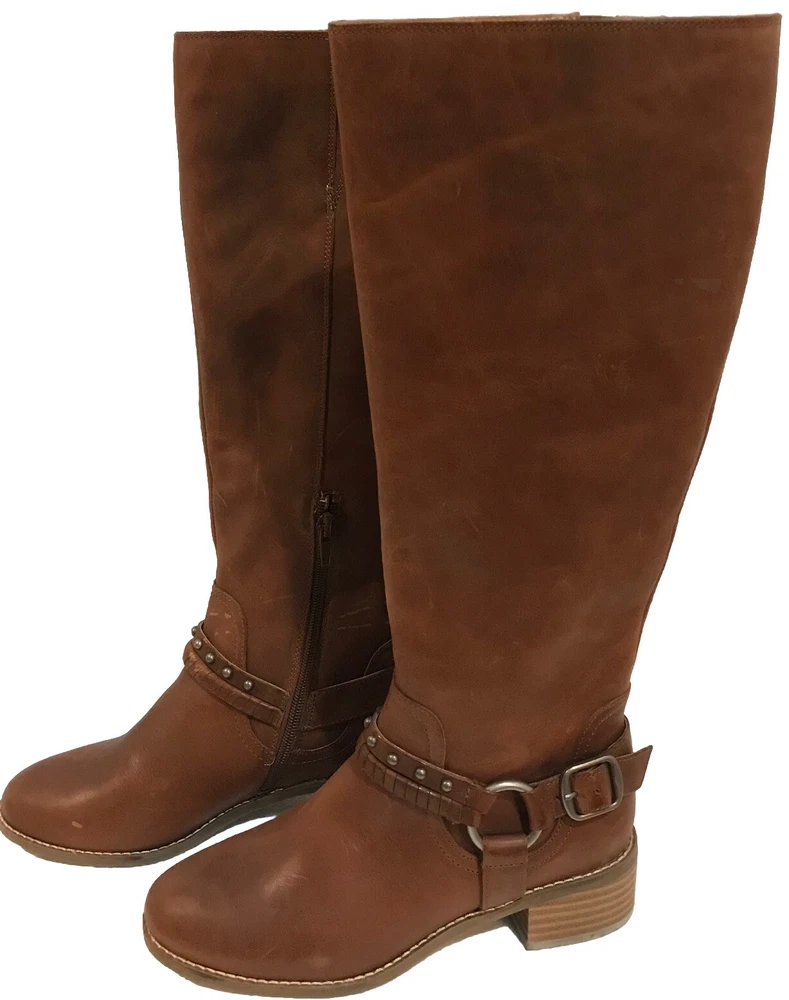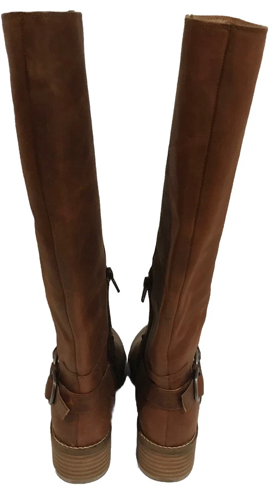 Elevate your equestrian style with these Lucky Brand Karesi Equestrian boots. Crafted from high-quality leather, these boots feature a round toe shape, low heel height, and a zipper closure for easy wear. The solid pattern and brown color make them versatile for any occasion, from casual outings to business meetings to cocktail parties. These women's boots are designed for comfort, with a cushioned insole and lined interior. The outsole is also made of leather, ensuring durability and longevity. Perfect for any season, these boots are a must-have for any fashion-forward woman. Will be shipped & packaged with care.