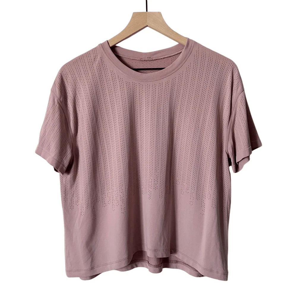 Lululemon Train to Be Short Sleeve in Pink Taupe. Excellent used condition with no flaws. No size tag or dot. Fits Size 12 per measurements. Chest - 22” Length - 21.5” Lightweight Four way stretch Ventilation Relaxed fit No side seams SKU 102124