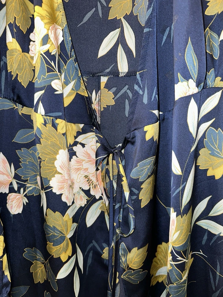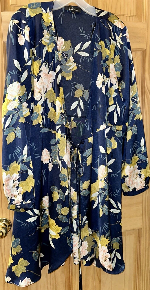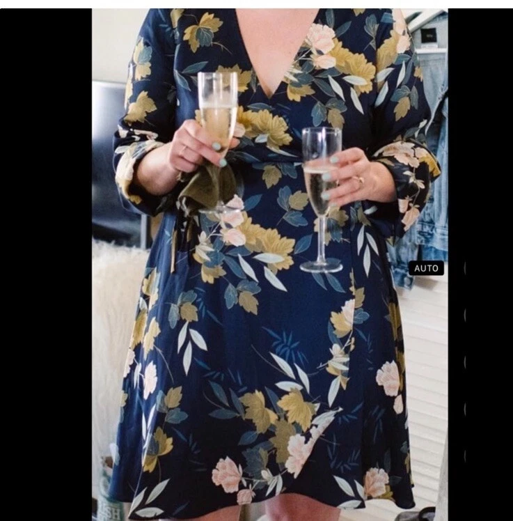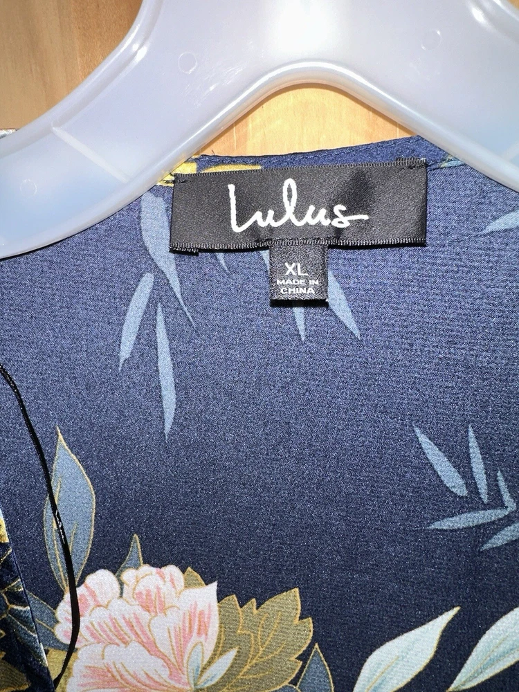 This elegant wrap dress by Lulus features a beautiful floral print in navy blue, perfect for any romantic occasion. The dress has a V-neckline with a pleated and ruffled accent, along with a layered and bowed closure. The long balloon sleeves and slimming design make this dress both stylish and comfortable. Made of high-quality polyester satin, this dress is machine washable and easy to care for. It comes in size XL and is suitable for various occasions such as weddings, holy communions, parties, and even casual and formal events. The dress has a short length and is perfect for summer, fall, and spring seasons. This dress is sure to make you feel like a princess on your next vacation or at your next party.