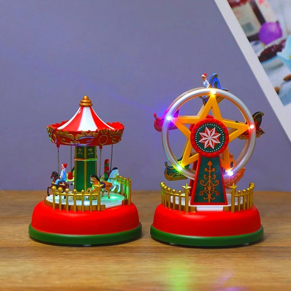 Size: Carousel/Ferris Wheel: 11*11*15cm Material:Plastic Power supply mode: 3 AAA batteries (not included)