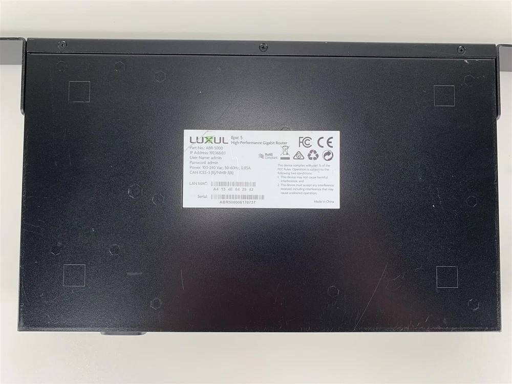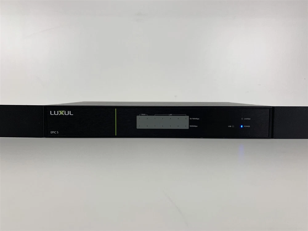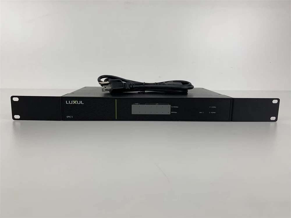 Luxul Epic 5 ABR-5000 High-Performance Gigabit Router ITEM DESCRIPTION: Tested. Good working condition. (Please Note: This item is used and may have marks, scratches, small dents, scuffs or other cosmetic defects as to be expected from a used item. Please see photos.) ACCESSORIES: Rack mount ears and power cord. Powered by SixBit's eCommerce Solution