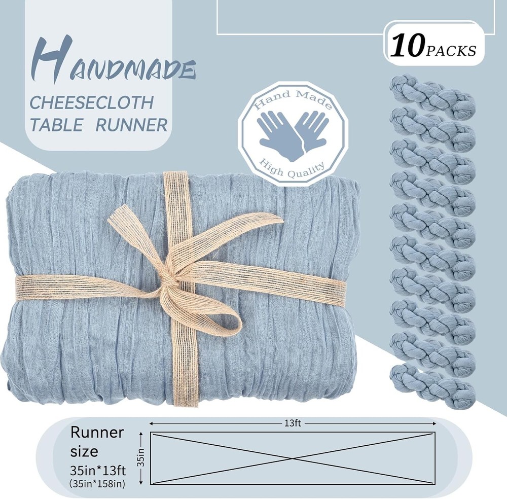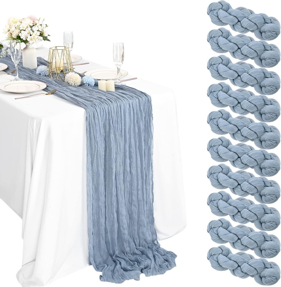 Luxurious Hand-Dyed 10 Pack Table Runners - Dusty Blue Cheesecloth for Weddings ‹ › ‹ › ‹ › ‹ › ‹ › ‹ › ‹ › ‹ › ‹ › Luxurious Hand-Dyed 10 Pack Table Runners - Dusty Blue Cheesecloth for Weddings Transform your events into stunning displays of elegance with our exquisite 10 Pack of Dusty Blue Cheesecloth Table Runners. Each runner, meticulously crafted from soft cotton and linen, measures approximately 35" wide and 13 feet in length, making them perfect for both rectangular and round tables. Features: Includes 10 packs of Dusty Blue cotton and linen gauze table runners. Each runner measures 157 inches long - ideal for diverse table shapes. Perfect for wedding arches, table settings, chair belts, curtains, and home decor. Made from soft, reusable, washable, and fade-resistant cheesecloth. Unique wrinkled texture offers an elegant and rustic appearance. Easy to care for; machine washable or hand wash with mild detergent. Guaranteed high quality with long-lasting color retention. Benefits: Elevate your special occasions with luxurious, hand-dyed table runners. Create stunning, flowing designs with ease. Versatile enough for every occasion, from weddings to dinner parties. Effortless maintenance with no ironing needed, preserving the wrinkled texture. Why Choose Our Cheesecloth Table Runners? Are you searching for the perfect finishing touch to enhance your event decor? Our Luxurious Hand-Dyed Cheesecloth Table Runners are designed to embody elegance and rustic charm, making them the ideal embellishment for weddings, bridal showers, and more. With a promise of high quality and satisfaction, our table runners maintain their beautiful color and texture even after repeated use. Don’t compromise on style; let our Dusty Blue Cheesecloth Runners be the highlight of your special occasions. Order your set today and indulge in the art of beautiful gatherings! Shipping Free & Fast Shipping - We offer free shipping to most of the USA with a normal delivery time of 3-7 days. However, due to the current situation, additional delivery time (up to 3 weeks) may be required for some items. Alternative Carriers - We may use alternative carriers (e.g. USPS, FedEx, UPS, etc.) to ensure your package arrives safely and on time. Due to the use of multiple carriers, we are unable to provide a tracking number automatically. Handling Time - Orders are processed and shipped within 1-2 business days of receiving cleared payment. Shipping Restrictions - Shipping to Alaska, Hawaii, Puerto Rico, Guam, and other US territories may incur shipping charges or delivery restrictions. Please contact us before ordering, or your order can be refunded/cancelled. State Restrictions - There may be restrictions based on your state of purchase. For example, certain items may not be shipped to California due to state regulations. Contact for Tracking Updates - If you require tracking updates or have any concerns about the delivery of your order, please feel free to contact us, and we will be happy to assist you. Return 30-Day Hassle-Free Returns - We want you to be completely satisfied with your purchase. If you are not, you can return the item within 30 days of receiving it for a full refund or exchange. Easy Return Process - To start a return, simply contact us and we will provide you with a prepaid return shipping label and detailed instructions. Restocking Fee - There are no restocking fees for returns. However, the buyer is responsible for return shipping costs if the return is not due to a seller's error. Refund Processing Time - Refunds will be processed within 5 business days of receiving the returned item in its original condition. Payment We accept all major credit cards, PayPal, and Apple Pay for your convenience. Your payment information is secure and encrypted to ensure a safe and seamless transaction. Please complete your payment within 3 days of purchase to avoid any delays in shipping. Feedback Your feedback is extremely important to us. We strive to provide the best products and customer service possible. If you are satisfied with your purchase, please take a moment to leave us a positive review. If you have any concerns or issues with your order, please contact us before leaving negative feedback. We are committed to resolving any problems and ensuring your satisfaction. Contact Us If you have any questions or concerns, please feel free to reach out to our customer support team. You can contact us through the eBay messaging system. We are available Monday to Friday, 9:00 am to 5:00 pm EST, and we will do our best to respond to your inquiry within 24 hours. Buy it now and enjoy a pleasant shopping experience! UPC: Not Set Unit Quantity: 10 packs Material: Cotton,Linen,Cheesecloth,Gauze,Polyurethane (PU) Theme: Not Set Occasion: Christmas,Valentine's Day,Wedding,Bridal Shower,Engagement Banquet,Birthday Parties,Ceremony,Dinner Party,Tea Party,Bachelorette Party,Thanksgiving,Special Occasions Features: Machine Washable,Reusable,Washable,Fade Resistant,Wrinkled Texture,No Ironing Required Department: Adults,Unisex Character: Not Set Brand: Unbranded Color: Dusty Blue Type: Table Runner Pattern: Solid Style: Rustic Shape: Rectangle MPN: Not Set Country/Region of Manufacture: Not Set Item Length: Not Set Character Family: Not Set Item Width: Not Set Model: Not Set Unit Type: ft Care Instructions: Not Set Personalize: Not Set