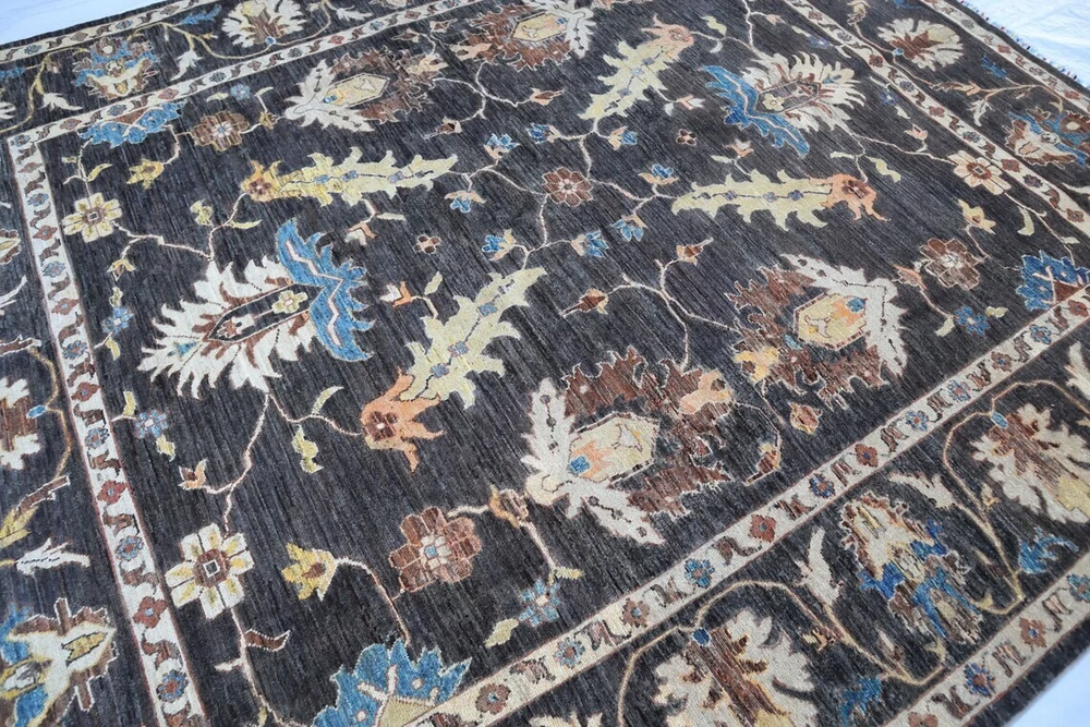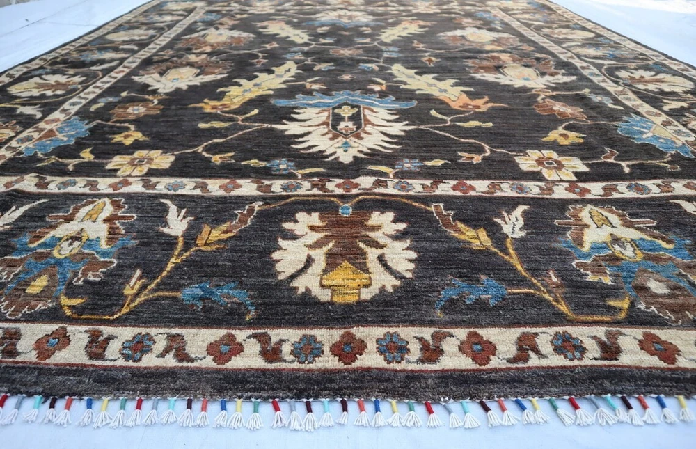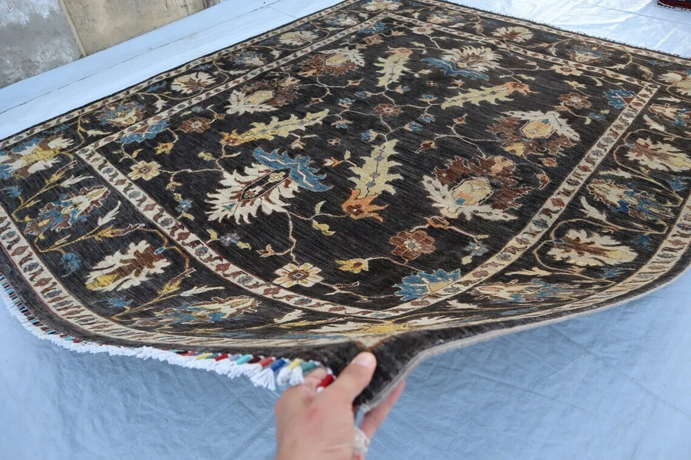 Elevate your space with this exquisite hand-knotted wool carpet, featuring a timeless traditional oriental design. The rich black base is adorned with intricate floral and geometric patterns in shades of blue, beige, and brown, making it a perfect statement piece for any living room, bedroom, or office. Key Features: ✔ Oushak Rug ➤Completely new area rug ➤100% hand-knotted and hand finished ➤Due to the hand-made nature of the rug, size may vary by 2 to 3 inches. Please let me know your requirements in case a specific measurement is required. ➤ Uses the old traditional techniques and designs of the migrated masters of the Orient ➤One of a kind incredible design and color palette ➤ High-Quality Natural Wool ➤ Has a very rich and soft pile ➤ Dyed with natural colors ➤ At no point chemicals, colors, or processes were used in making this rug ➤ Multiple sizes are available, some for immediate delivery and others made-to-order. ➤ Make-to-order rugs take about 30–40 days ➤Free, expedited shipping everywhere ✔ Perfect for Traditional & Modern Interiors Care Instructions: Vacuum regularly to maintain its appearance. Spot clean with a mild detergent or seek professional cleaning for best results. Add sophistication and warmth to your home with this luxurious hand-knotted wool carpet. Fast shipping and secure packaging guaranteed. Feel free to message for additional details or custom inquiries. All Carpets in My Store are Made up of 100% wool, this exquisite hand Knotted rug is durable with a gentle feel. A medium-thick pile in contrasting heights adds delightful decorative complexity, while still maintaining softness & warmness underfoot. The defining details of this rug are sure to make it a conversation piece and an icon of your household. It is a joy to step out of bed in the morning onto these rugs and also perfect for rolling out in a calming nursery or a delightful playroom. Material used:- WOOL AND COTTON PLEASE NOTE:- The images we display have the most accurate color possible. Due to differences in computer monitors, we cannot be responsible for variations in color between the actual product and your screen. Please be advised that in some cases patterns and colors may vary according to size Feedback 1. We depend on our customer satisfaction to succeed. therefore, your feedback is extremely important to us. 2. If you are satisfied with our service, please leave positive feedback to us. thank you! 3. Contact us before leaving any negative or neutral feedback, we will try our best to solve any problems. Terms 1. We will check all the product before shipping to you. 2. If the item is defective, please contact us at once, we will send a solution the first time. 3. Any import charges or fees are the buyer's responsibility. 4. Please check out your ADDRESS carefully when processing an order. 5. Feel free to contact us with any question or query, and any other things like for bulk orders or any custom order we will offer you a satisfying answer. Shipping: All items will ship promptly after payment has cleared Payneer. Please provide the correct and updated address and Contact Number for shipping. Usually takes 5-15 business days for the delivery. Note :- We offer Free Shipping All Across The World. Thanks for Visiting UK HOME FURNISHING