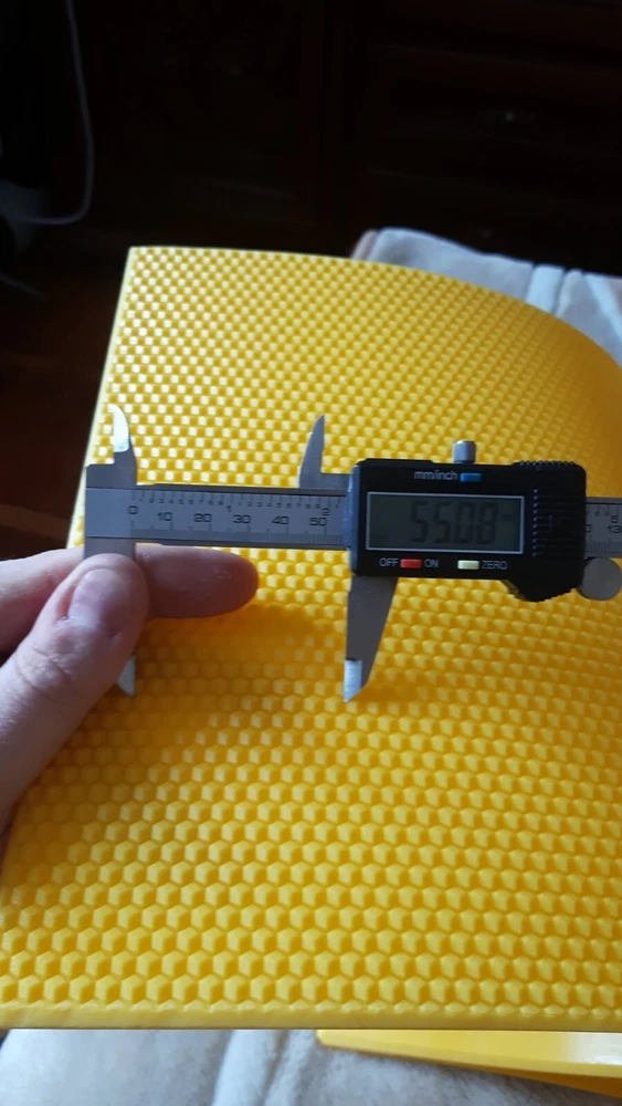 TOP quality product! Doesn't stink like its Chinese counterpart. Much stronger and more durable than cheap silicone counterparts! PRESS FOR FOUNDATION BEESWAX FLEXIBLE POLYURETHANE + FREE SHIPPING BEE WAX PRESS, FOUNDATION MACHINE NEW, DADAN, BEESWAX SHEETS making machine (other sizes are possible, individual ones according to the customer’s request) Matrix for the production of sheets of the beeswax is made of very dense food polyurethane You can control the thickness sheet by wax temperature and the amount of passage of the workpiece through the wax (85 grams or more per sheet) The size of the working surface with cells 410 * 260 mm. Cell size 5.5 mm. Colour of press - random color For the manufacture sheets of the beeswax it is necessary to make a flat billet (workpiece). Billets need to warm the water to 40-45 degrees Celsius. Put the heated billets between two matrix sheets and roll them with a rolling pin, pipe or smooth rollers. Using a matrix, you can make sheets of the beeswax with a size of 410 * 260 mm or smaller Wax does not stick to the press! Additionally, watch the video! video hammer test hammer test BEE WAX PRESS FOUNDATION MACHINE NEW Dadant 5 5 5 6mm BEESWAX SHEETS - YouTube Video will open in a new window Using the eBay App? Paste link into a browser window: [isdntekvideo] video 2 (on video i show matrix with sizes 410*260mm for example how it works) matrix with sizes 410-260mm for example how it works - YouTube Video will open in a new window Using the eBay App? Paste link into a browser window: B ees remarkably pull out the wax base and do not nibble it, unlike purchased wax, in which manufacturers mix paraffin and other additives! Every beekeeper need to have one in his home if he wants 100 % wax foundation from his own bees! It will pay off because you can now make it in your own beeswax foundation, without taxes and shop merges. It will be good for use for many years, because of very good quality. I have sell my press on all over the world _________________________________________ NOTE: price is for only one press, if you need more contact me and I will give you better price. Colour of press - random color Sales tax / Customs duties: Any sales taxes or Customs duties are not included. If came out, they must be undertaken by the buyer. ________________________________________ FREE SHIPPING Package include: one polyurethane press for beeswax foundation dadant, 5.5 mm cell Contact me for delivering time, I will answer. Shipping in a cardboard box 30 x 50 x 2,5 cm (11,8 x 19,7 x 1 inches) handling time is about 20 working days, shipping time is around 1 - 4 weeks (most of them 2-3 weeks). Due to the pandemic emergency, shipments may be delayed. Tracking number Please share this information for all beekeepers. AVALIABLE types of the silicone forms: (Contact me or see all offers from my account) 1. Silicone form for making 50 thick-walled cups that made from bee-wax 2. Silicone form 50 bee-wax Nicot cups 3. Silicone form for making 10 big bee-wax cups for collecting bee-mother milk. 4. Silicone form for making 27 big bee-wax cups for collecting bee-mother milk. 5. Silicone form for making 6 handles Nicot from bee-wax. Feedback Please contact us prior to leaving neutral feedback or negative feedback. We will make the best with all transactions. Contact me (mail). Thank you.