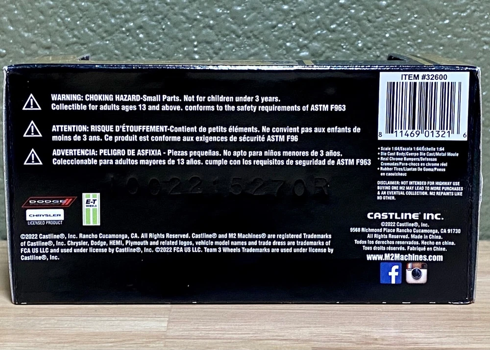 This M2 Machines 1957 Crysler 300C R64 22-15 Die-cast 1:64 Model Car is a must-have for any classic car enthusiast. The stunning green color and intricate detailing make this diecast car a standout addition to any collection. The car is made with high-quality materials and features a 1:64 scale. This 2022 M2 model car is a great addition for collectors of all ages. The car comes in an unopened box and is recommended for ages 8 and up. This classic car theme toy is perfect for boys and girls who love cars. Same day shipping and packaged with care. Thank you for shopping TKO Specialties