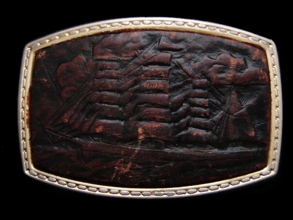 011113119 MA11119 VINTAGE 1970s **BARQUE SAILING VESSAL** SHIP WITH SAILS LEATHER BUCKLE REALLY GREAT BUCKLE ! Scroll Down For More Pictures (ad created with AdGen 16.5X. - posted by: GW) GENDER: MALE ERA: 1970s MAKER: UNKNOWN FINISH: GOLDTONE METAL / LEATHER INSERT * GREAT VINTAGE BUCKLE !! * PLEASE REFER TO PICTURES FOR MORE DETAILS & CONDITION COMMENTS: * GUARANTEED ORIGINAL VINTAGE ITEM !! * GREAT VINTAGE PATINA!! MEASUREMENTS: 3.45" (8.8cm) Width 2.30" (5.8cm) Height 1.90" (4.8cm) Max. Belt Width Every item carefully hand measured! A GREAT ONE TO ADD TO YOUR COLLECTION !! **** IMPORTANT **** WE SELL VINTAGE ITEMS THAT MAY DETERIORATE OVER TIME. WE CAREFULLY INSPECT EACH ITEM AND TRY TO NOTE ANY VISIBLE FLAWS, BUT ARE NOT LIABLE FOR DAMAGE THAT OCCURS AFTER PURCHASE. ALL ITEMS ARE SOLD "AS IS" ONLY WITH NO WARRANTY OF ANY KIND EXPRESSED OR IMPLIED. Promotional Payment Information Payment Terms FULL PAYMENT REQUIRED WITHIN 5 DAYS OF PURCHASE! Payment Options Please see this site's payments section for available options. Shipping Information Shipping Rates U.S.A. CANADA OTHERS 1st Buckle $5.00 $12.00 $16.00 Additional Buckles $1.00ea. $2.00ea. $2.00ea. FREE U.S.A. SHIPPING ON 3 ITEMS OR MORE! FREE INTERNATIONAL SHIPPING ON 10 ITEMS OR MORE! EVERY PACKAGE NOW INSURED AGAINST LOSS OR BREAKAGE! All items shipped with a tracking # in order to comply with buyer/seller protection requirements. International Buyers *Import duties, taxes and charges are not included in the item price or shipping charges. These charges are the buyer's responsibility. *Please check with your country's customs office to determine what these additional costs will be prior to bidding/buying. *These charges are normally collected by the delivering freight (shipping) company or when you pick the item up. DO NOT confuse them for additional shipping charges. *We do not declare merchandise values below actual selling price. We also do not mark items as "gifts". U.S. and International government regulations prohibit such behavior. *Some countries customs clearance can delay arrival of your shipment up to 60 days! BEFORE BIDDING ON OR BUYING OUR ITEMS YOU MUST AGREE TO THE FOLLOWING TERMS: Buyer agrees to pay for item within 5 days of purchase. No returns accepted without prior authorization from seller. Shipping charges will not be refunded or reimbursed on returned items. ***** All items sold "AS IS" only ******