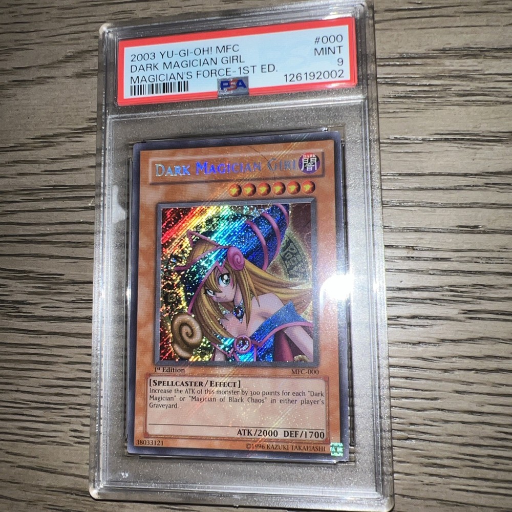 The Magician's Force MFC-000 1st Edition Dark Magician Girl PSA 9 Yu-Gi-Oh! card is a highly sought-after collectible within the trading card game community. As a Secret Rare card from the Magician's Force set, it features the Dark Magician Girl character with impressive stats such as 2000 Attack/Power and 1700 Defense/Toughness. Recently Graded by Professional Sports Authenticator (PSA) with a score of 9, this English-language card is a valuable addition to any Yu-Gi-Oh! TCG collection. Known for its rarity and appeal to fans of the game, the Dark Magician Girl card is a must-have for collectors and players alike.