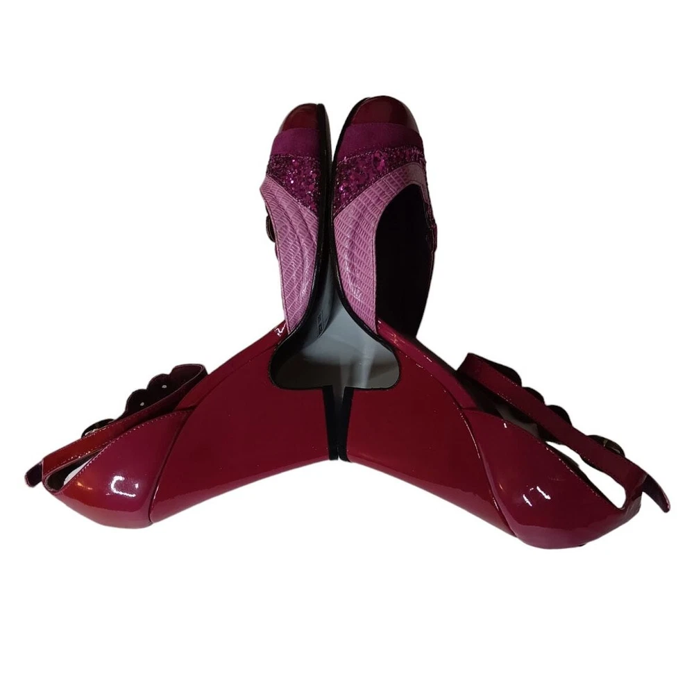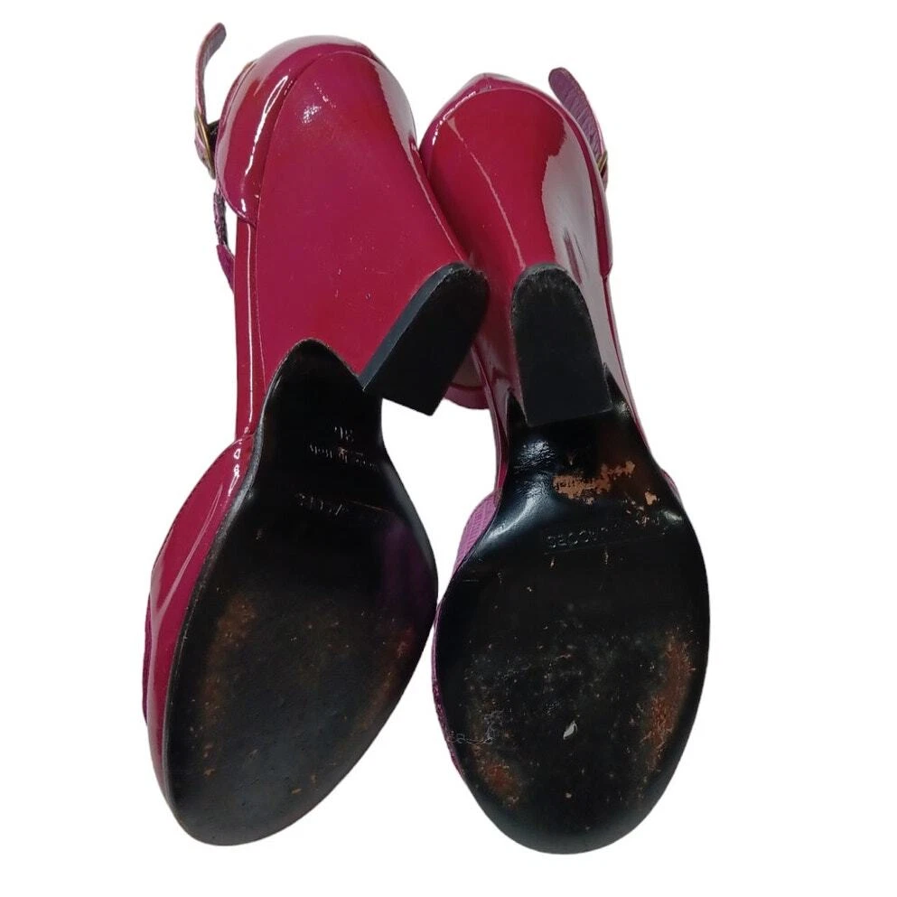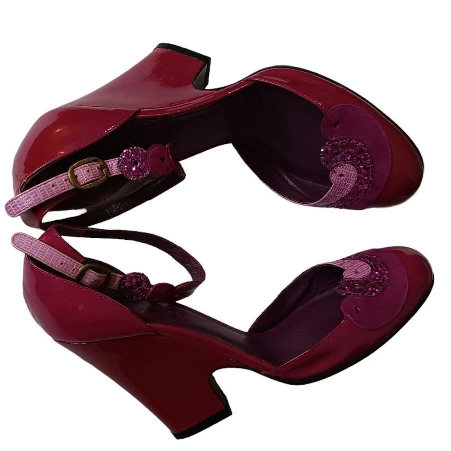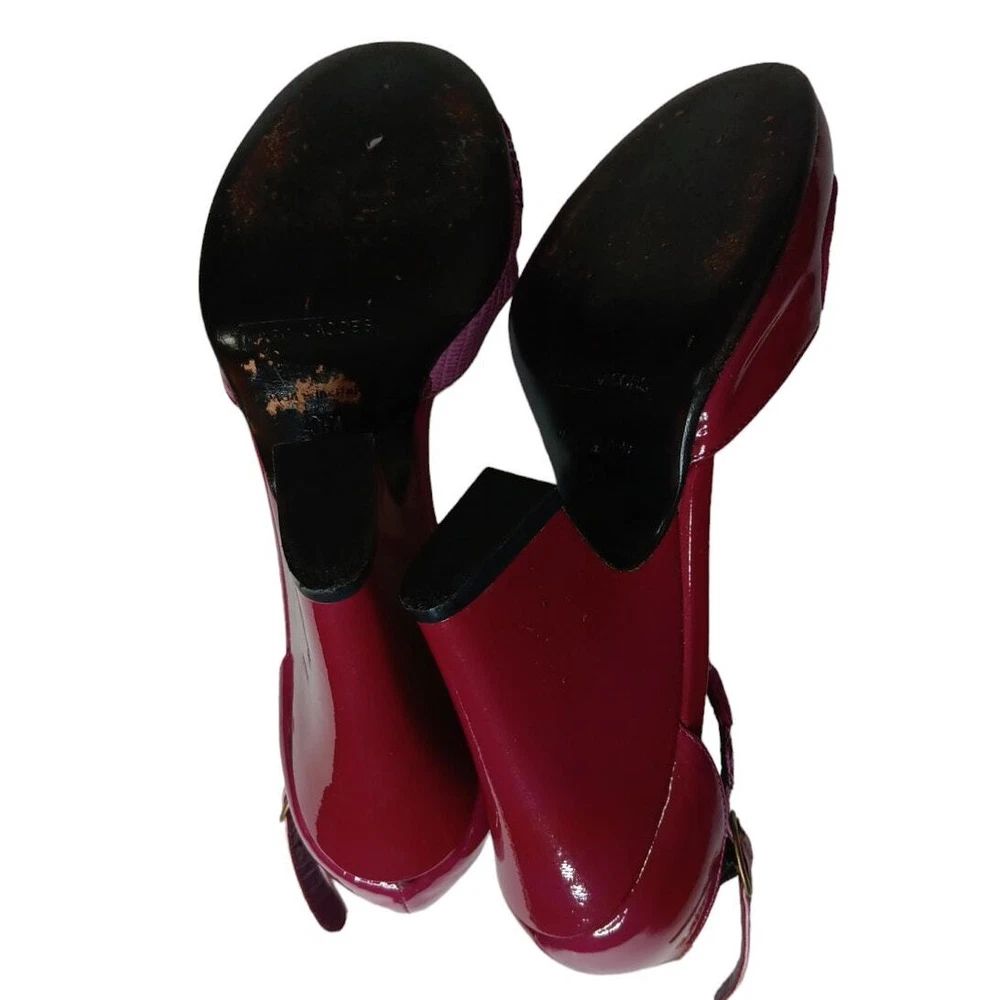 Super cute and girly! Pink and purple patent leather with sparkly trim. Gently worn. MARC JACOBS Retro Heels Wedges Pumps Shoes EU 36 or approximately a US 6 (per brand's size guide, but fit can vary by brand/style) Adjustable Ankle Straps Authentic In good pre-owned condition with some signs of wear such as minor marks, faint creasing and just normal wear. Pair in photos is the same pair for sale so please zoom in and review all pics carefully for full condition and signs of wear. No box or dust bag. Keywords: Designer Sustainable Bright Colorful Feminine Kawaii Pinup Flirty Coquette Girly Fairy Housewife Cute Dance Retro Work Career Office School Dressy Wedding Guest Party Photo Event Holiday Used Preowned Secondhand Smoke-free/pet-free home Color/texture may vary due to lighting/devices ID:SB/1.7