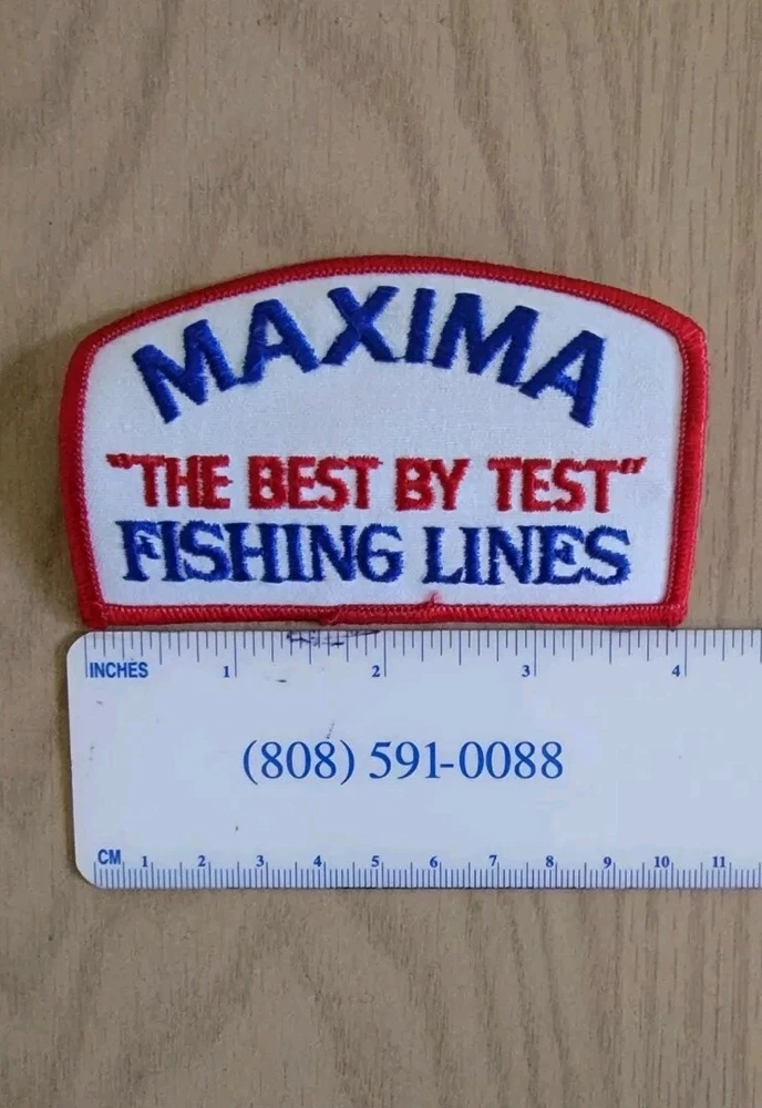 This vintage Maxima fishing patch is a must-have for any fishing enthusiast. The 1980s sewn patch "Best By Test" nylon fishing line is 100% cotton and comes in a size of 2-1/2" x 4". The patch is white in color and features a lined design. It is perfect for both men and women and is ideal for fishing activities. The outfit is made in Germany and is a great addition to any fishing collection. This patch will be sent via USPS FIRST CLASS ENVELOPE.