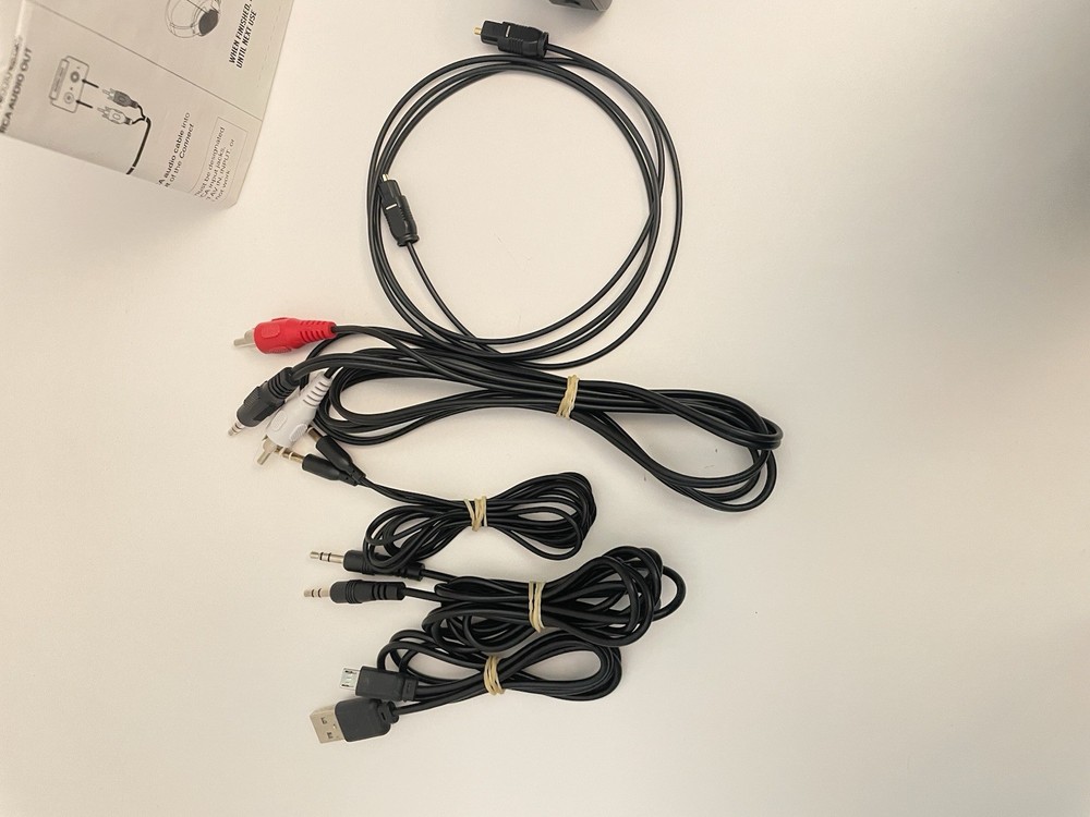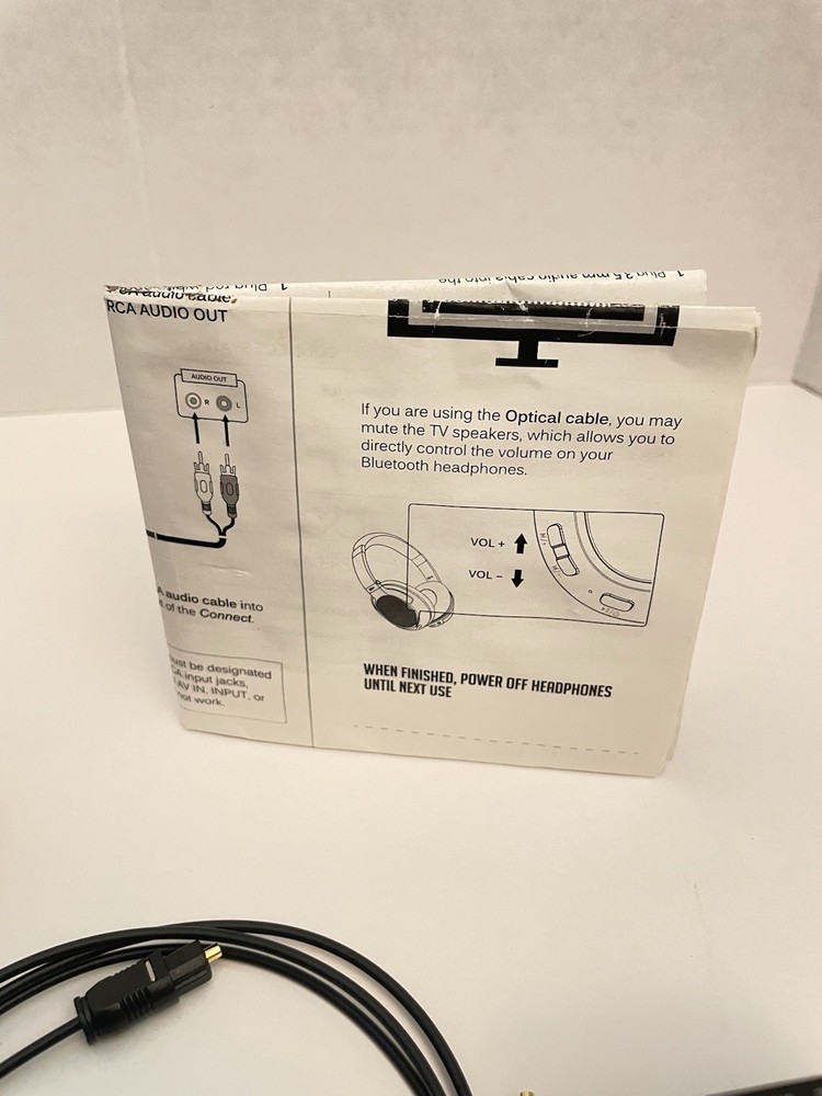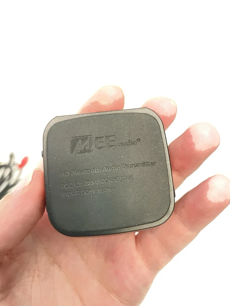 This is the Mee Audio Connect universal Bluetooth wireless audio transmitter. This item is used. Please refer to photos for condition. This includes the RCA cables, 3.5 mm cables and optical cable.