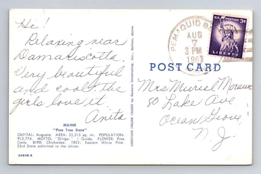 ME-Maine, General Greetings Landmarks, Antique, Vintage c1961 Postcard