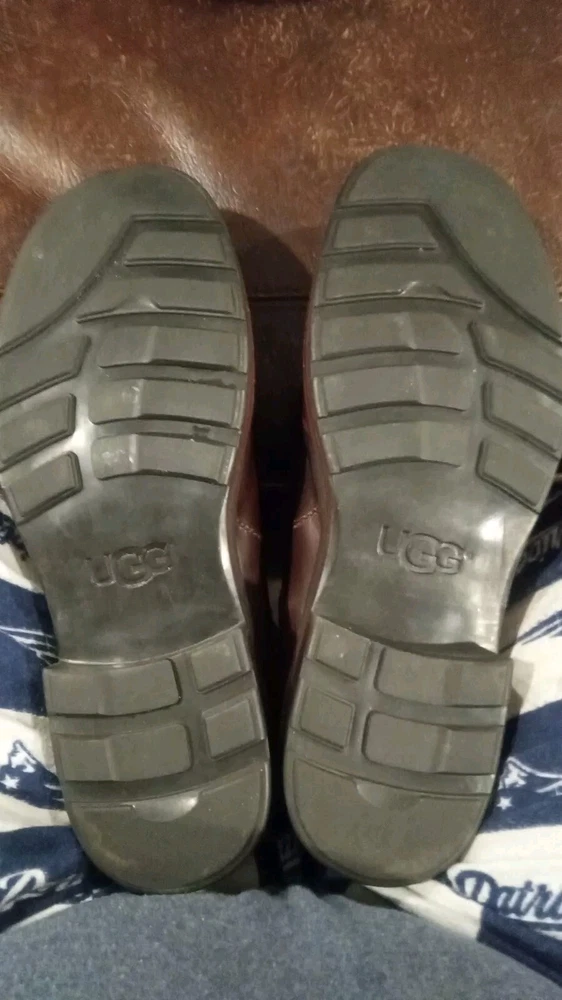 Elevate your style statement with these men's UGG Classic biker riding boots. Crafted with waterproof leather and a zipper closure, these boots are perfect for any occasion - from casual outings to activewear to travel. The round toe shape and adjustable strap with buckle accents ensure a comfortable fit, while the leather lining and insole provide added comfort. These vintage-inspired boots feature a solid pattern and a mid-calf shaft style, making them a versatile addition to your wardrobe. The boots come in a classic brown color and are available in US shoe size 13 and UK shoe size 12. BOOTS ARE 12" FROM BOTTOM OF HEEL TO TOP, FULL ZIPPER, ADJUSTABLE BUCKLED. SOME VERY LIGHT SCUFFING ON ZIPPER SIDES. BEAUTIFUL BOOTS !!!!
