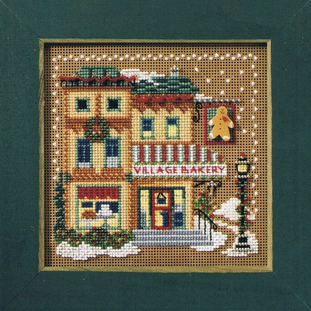 Mill Hill Button & Beads Kit - Village Bakery (Christmas Village) ***The original button in this kit has been replaced by the manufacturer with a comparable button*** 5" x 5 " Counted Cross Stitch Kit Includes: Mill Hill Glass Beads Mill Hill Button, Mill Hill 14 Count Perforated Paper, Floss, Needles and Chart with Instructions. Frame and Pin Kit not Included