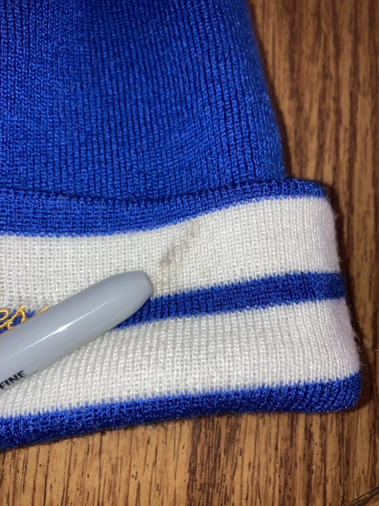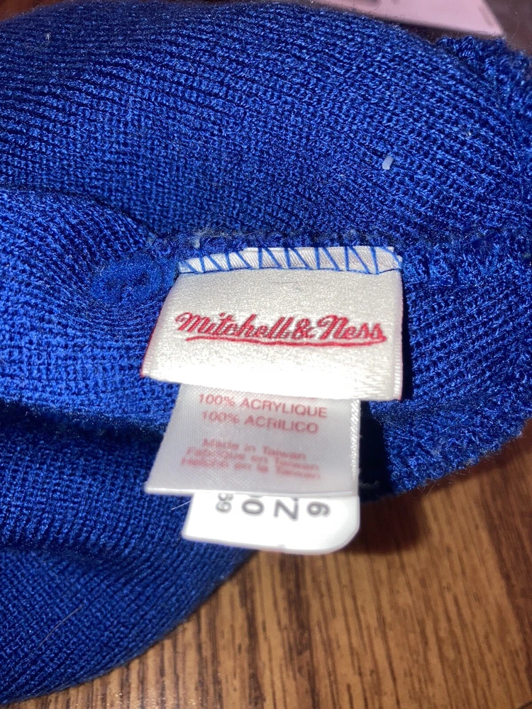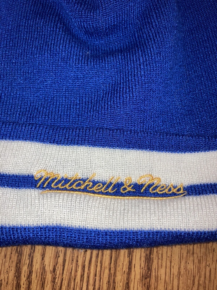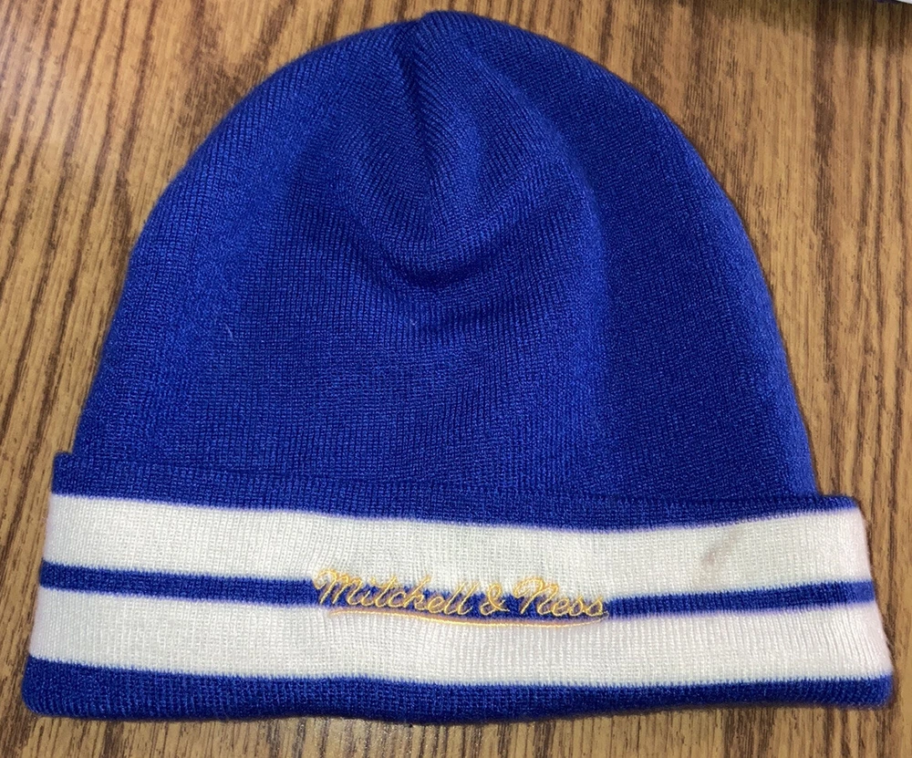MITCHELL & NESS Blue NBA Stripe Beanie Winter Hat Adult. Condition is Preowned. In good condition, has a light stain on the one side (see picture). Ships usps first class.