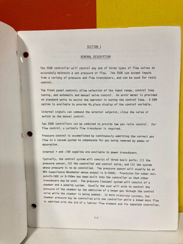 MKS 195-107167B-9/83 Type 250B Pressure/Flow Controller Instruction Manual