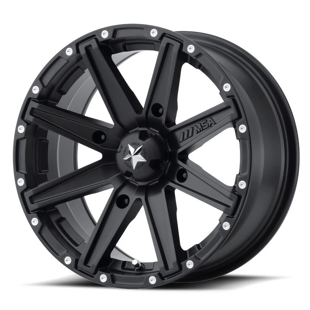 Home All Listings About us Contact Us Categories Tires Wheels Packages Vintage Tires and Wheels TPMS sensors MSA OFFROAD M33 Clutch Rim 14X7 4x110 Offset 10 Satin Black (Quantity of 1) Product Specifications Brand: MSA Offroad Style: M33 Clutch Rim Width: 7 Number of Bolts: 4 Boltpattern: 4x110 Offset: 10 Rimbackspace: 4 Hubbore: 86 Load Capacity: 1000 Wheel Lip: 0 Rimfinish: Satin Black Center Cap Included: Included Lugnut Included: No Rim Material: Aluminum Wheel Weight: 12.35 Product Description MSA Wheels by Wheel Pros Powersports Division are designed, engineered, and field-tested in the Rocky Mountains for your performance and safety. After all, with more than a decade of experience in the aftermarket UTV biz, Wheel Pros knows what you expect from a new set of wheels. Their line of motosport alloy wheels are hand-inspected and finished with top quality automotive paints, inserts, and other materials, plus, they feature a lightweight virgin aluminum construction. That attention to detail means you get a high luster, low porosity wheel that looks awesome and stands up to the harshest of demands from your ride. Please Note! Photos shown are stock images provided by the wheel manufacturer and are only meant to represent the specific wheel model's design. It is physically impossible for us to upload all wheels in all widths, lip sizes and bolt patterns. You should always base your ordering decision based on the description and details found in our item specifics and product details. Before mounting tires onto new wheels we strongly suggest that your installer test fit the wheels on the front and rear of your vehicle to ensure proper fitment. Once the wheels have had tires mounted they are considered used and are not returnable . Shipping We ship orders either via Fedex, GLS-US (West Coast orders), or LTL Freight (for large or bulky shipments). Handling time for shipment on orders will be between 1-3 business days depending on availability in our warehouse. Most items should arrive before or on the date shown in the eBay listing and the confirmation email you get from eBay. Those estimates are subject to change due to unforeseen carrier delays such as the holiday rush, staffing issues, or weather or natural disaster events. Tracking numbers are uploaded to eBay as shipping labels are created. Once uploaded you will receive an email from eBay with all tracking information. Depending on the size, tires may be strapped together and wheels may be double boxed so that two wheel boxes will be in one shipping box. Due to eBay buyer protection agreements all orders over $750 in total value will be shipped with signature required at the time of delivery. We can only ship to the address provided by eBay when we receive your order. If you have a different address you want used be sure to make this change at time of check-out. Again, we can not change the shipping address once we receive the order. Shipping Damages, Items Missing If your shipment has arrived damaged or is missing: Please contact us within 24 hours of delivery! All shipping companies require notification within 48 hours of receipt to report damage or loss. Delivery carriers will not accept any claims for damage or loss after 48 hours. It is extremely important to save all packaging material for inspection by the shipping carrier. The carrier will inspect and pick up the damaged merchandise to return to Performance Plus Tire. Again, if your merchandise arrives damaged, please contact us within 24-hours of delivery to report the damage so that we can work with the shipping carrier and begin working on a reshipment. Please Send us a message via ebay We are available Monday - Friday: 8 am - 4 pm Pacific RETURNS We will gladly accept returns! We must be notified of any return requests within 30 days of receipt of your shipment. We can not accept any returns after 30 days. If we have made an error in what was shipped to you, we will provide pre-paid shipping labels. Once the product has been returned to Fedex we will either re-ship or refund your product. Your return request should be done in eBay. Go to "My eBay" and select "Return this item" to begin the return process. We will review your request and respond within 24 hours, Monday - Friday. All Shipping charges for the returned shipment are the responsibility of the buyer. We suggest shipping large and bulky items via Fedex or UPS. You should insure all shipments for damage or loss. Items returned that have been mounted, installed, used and/or altered in any way are subject to to a 50% restocking fee as these products cannot be sold as new. All products returned must be in their original packaging and packed to avoid further damage. We suggest double boxing wheels to add additional protection. If the items returned are damaged no credit will be issued. We strongly suggest insuring the shipment for loss and/or damage. Warranty Buy with Confidence from the Performance Plus eBay Store Performance Plus Tire & Automotive makes every effort to assure that its products meet high quality and durability standards, and warrants to the original purchaser that the product is free from defects in materials and workmanship for the period of 30 days beginning on the date of purchase. This warranty does not apply to damage due directly or indirectly to the following disqualifying conditions: Puncture to a tire Injuries to the sidewall or tread of a tire that do not penetrate the carcass Running a tire under-inflated or flat Tire Shoulder wear that's commonly caused by under-inflation, hard cornering or alignment issues. Uneven wear due to mechanical issues, which can include: feathered tread rim edges, cupping, diagonal wear, misalignment, worn or loose bearings Failed or improper tire repair Ozone cracking to the tire(s) Bead damage or improper mounting of a tire or wheel The above list includes a few of the general specific items that could cause issues. Some tire manufacturers have a road hazard wa